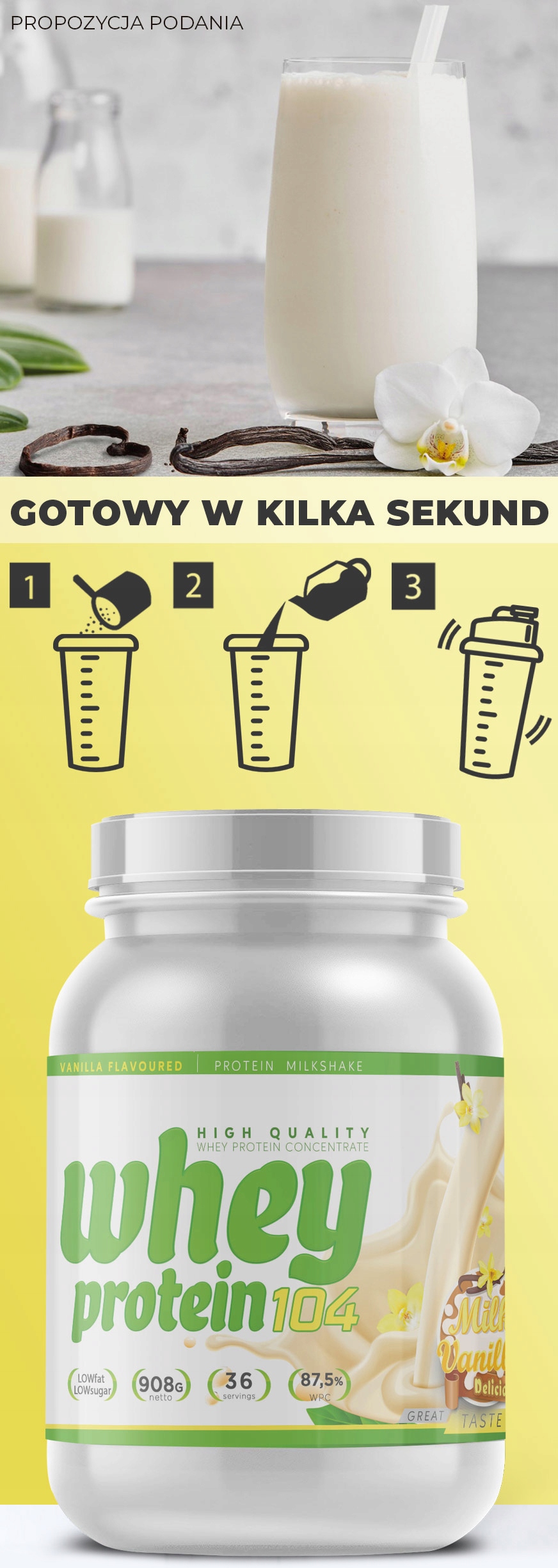 - Концентрат сывороточного протеина ПРЕМИУМ качества — Whey Proten 104 соответствует требованиям высочайшие стандарты долговечности и качества во всех аспектах, от приобретения сырья до производства конечного продукта. Сывороточный протеин поступает с европейских молочных заводов и составляет целых 87,5% продукта!