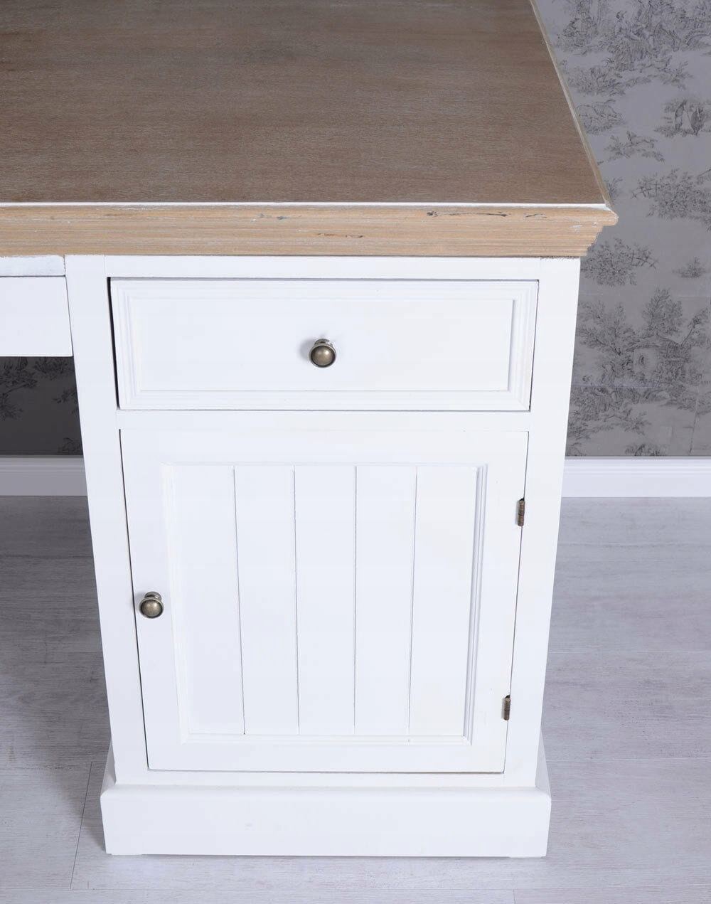 Бело-бежевый деревянный компьютерный стол в стиле шебби-шик – классическая элегантность