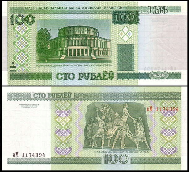 БІЛОРУСЬ, 100 РУБЛІВ 2000 Pick 26a