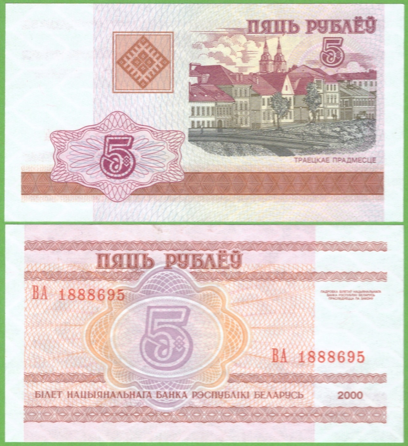 БЕЛАРУСЬ 5 РУБЛЕЙ 2000 P-22 ПРЕФИКС UNC BA