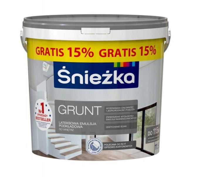 Белоснежный латекс Grunt-это продукт, предназначенный для декоративной живописи стен и потолков в помещении, как из цемента, цементного, гипса, кирпичей, гипсовой карты, дерева, дерева, дерева и обоев, включая стекловолокно. Краска чрезвычайно эффективна, очень устойчива к очистке. Кроме того, это обеспечивает быстрое и простое удаление пятен и грязи.