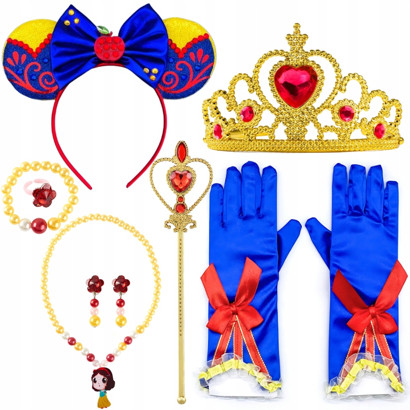 ✨ В комплект входят повязка на голову, перчатки, зажимы, колье, браслет, кольцо, корона и скипетр