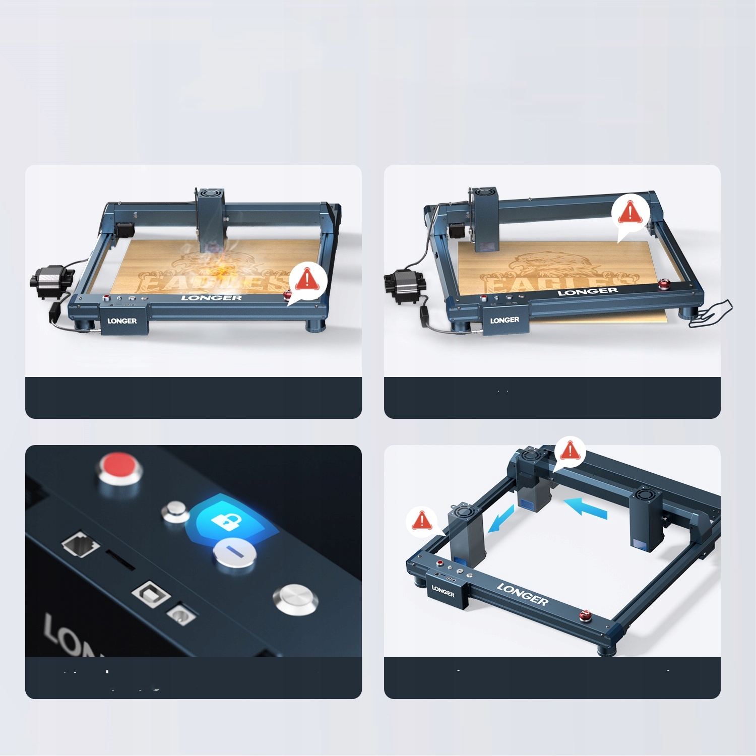✅ Какая безопасность имеет более длинную гравировку лазера B1. Безопасность/защита глаз/Кнопка аварийной остановки/сброс нуля. Лазерная головка автоматически возвращается к нулю, чтобы избежать сжигания во время зажигания