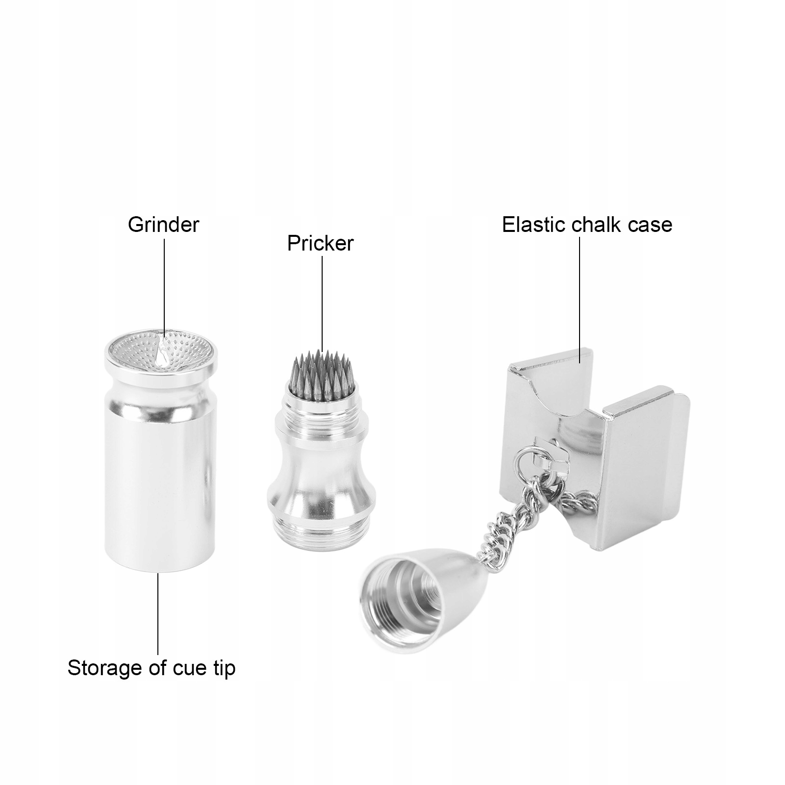3. Многофункциональный: благодаря таким функциям, как колючая голова, хранение мела и хранение кончиков палки, этот бильярд -держатель мела помогает поддерживать идеальное трение и блеск кончика палочки.