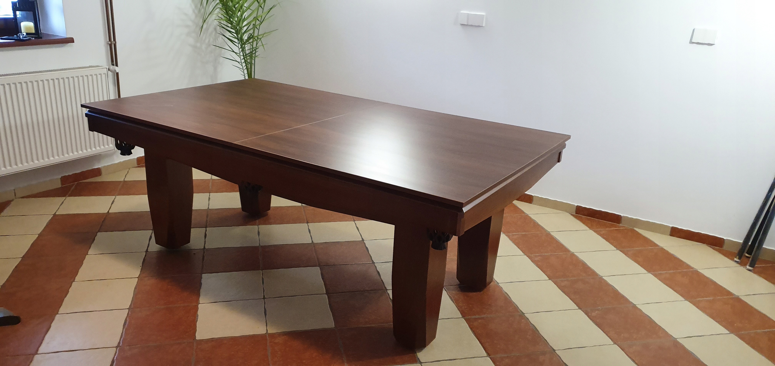 - Дизайн моделей столов, выпускаемых нашей компанией, тщательно продуман, поэтому чтобы клиент никоим образом не касался ног. Очертание стола. Мы гарантируем, что в сочетании с банкетной столешницей он создаст идеальный обеденный стол. Что касается нижней конструкции, то она отведена назад под венец, чтобы мы могли свободно сидеть и не касаться ногами нижней доски. Возможно, вы не видите этого на прилагаемых фотографиях предложения, но это то, что есть. Конструкция стола выпускается с 1995 года, поэтому с учетом нашего опыта и предложений клиентов она была тщательно усовершенствована и сделана так, чтобы идеально сочетать бильярдный и обеденный стол.