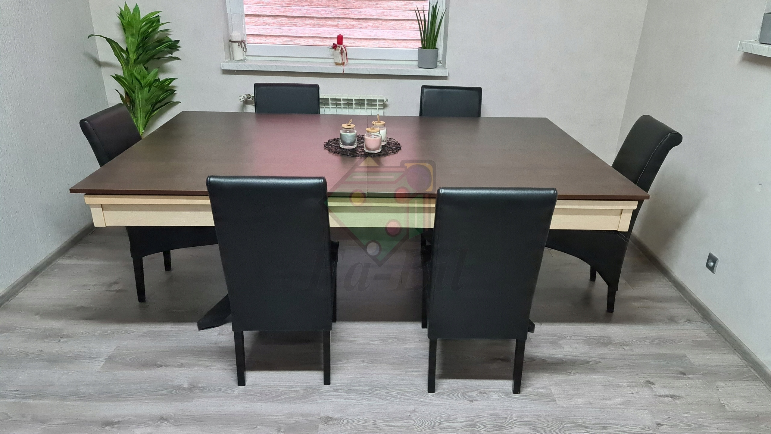 - Дизайн моделей столов, выпускаемых нашей компанией, тщательно продуман, поэтому чтобы клиент никоим образом не касался ног. Очертание стола. Мы гарантируем, что в сочетании с банкетной столешницей он создаст идеальный обеденный стол. Что касается нижней конструкции, то она отведена назад под венец, чтобы мы могли свободно сидеть и не касаться ногами нижней доски. Возможно, вы не видите этого на прикрепленных фотографиях предложения, но это то, что есть. Конструкция стола выпускается с 1995 года, поэтому с учетом нашего опыта и предложений клиентов она была тщательно усовершенствована и сделана так, чтобы идеально сочетать бильярдный и обеденный стол.