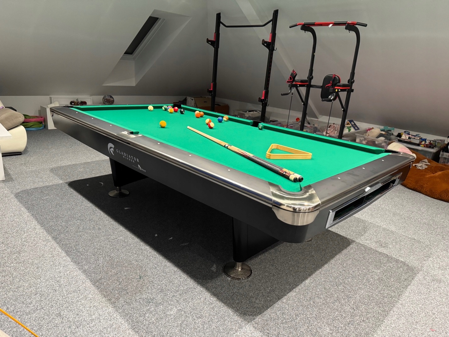 Победитель Gladiator 9ft Bool Table - это предложение для людей, которые ожидают максимальной точности, солидности и элегантного дизайна. Модель сочетает в себе профессиональные параметры игры с эстетикой, которая будет работать как в клубе, так и в домашнем пространстве.