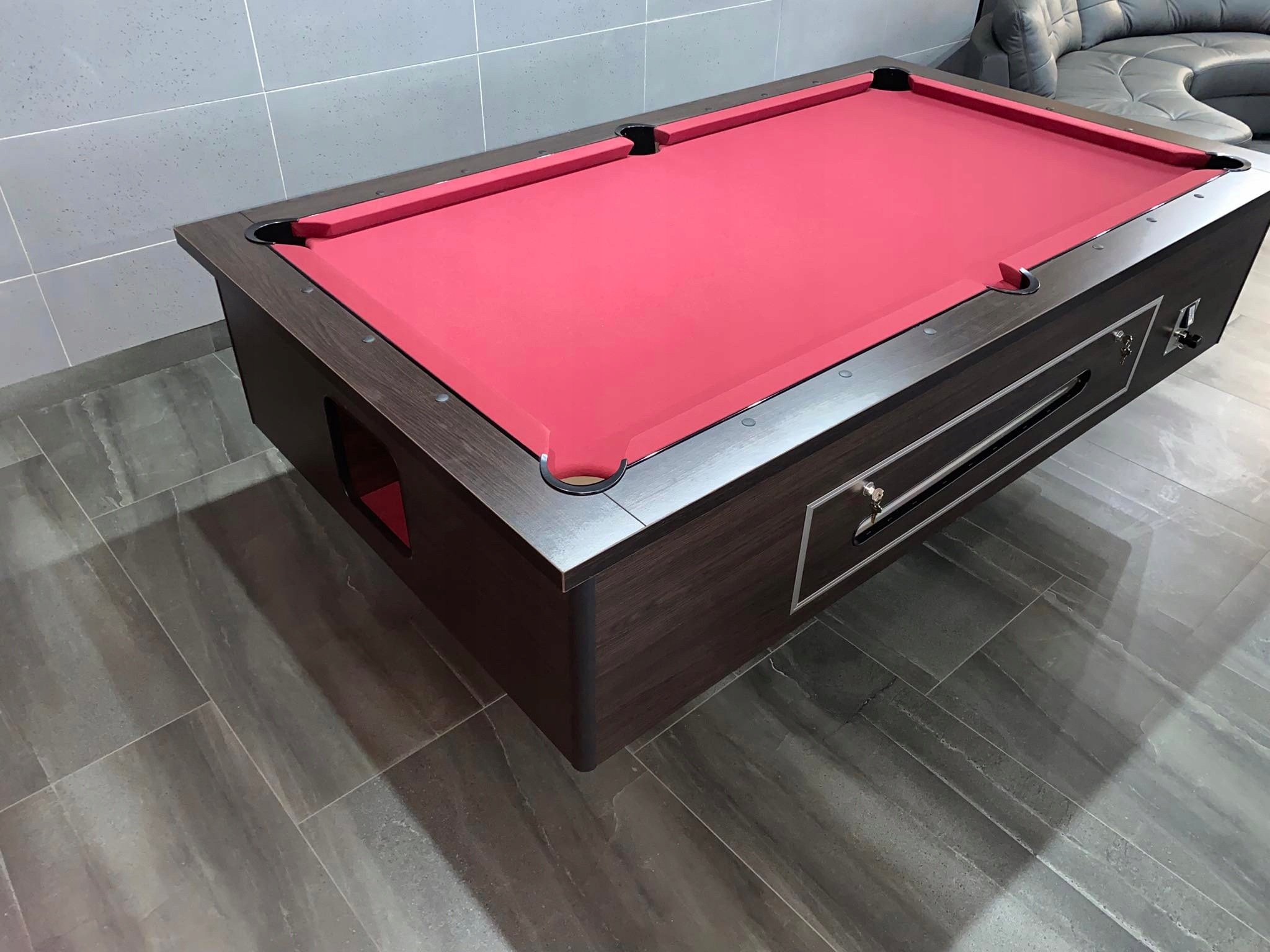 монетный механизм, расположенный в боковой крышке, имеет легкий доступ к внутренней части стола и возможность выпуска механических шариков.