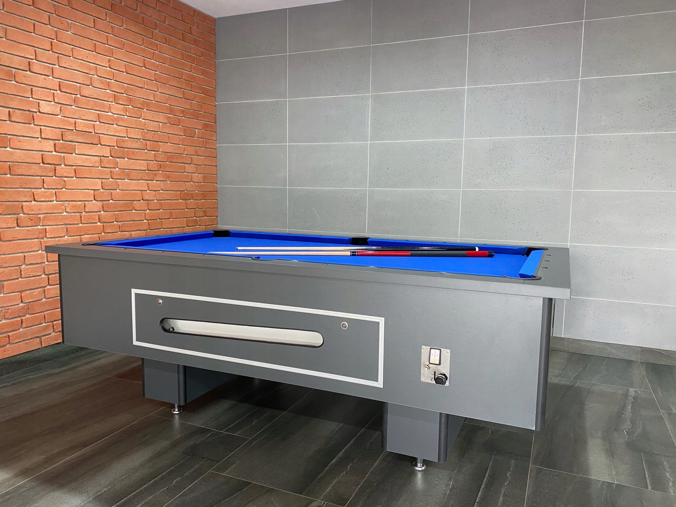 монетный механизм, расположенный в боковой крышке, имеет легкий доступ к внутренней части стола и возможность выпуска механических шариков.