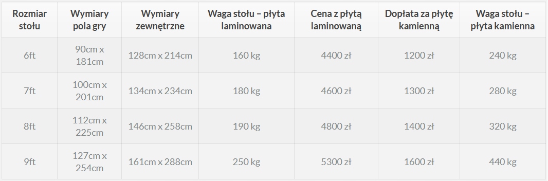 Доставка стола транспортом компании на сумму 300 злотых по всей территории.