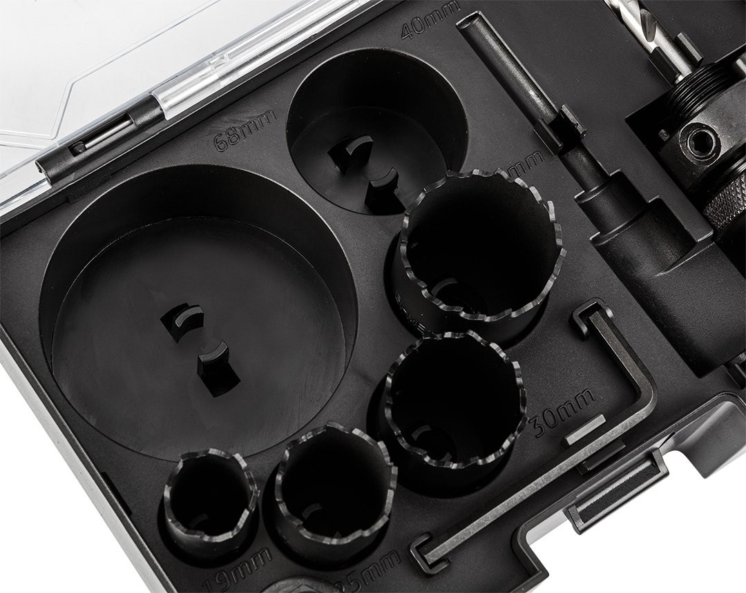 - Универсальность: благодаря различным размерам отверстий, набор идеально подходит для работы в различных материалах. Для тщательного резки и бурения отверстий.