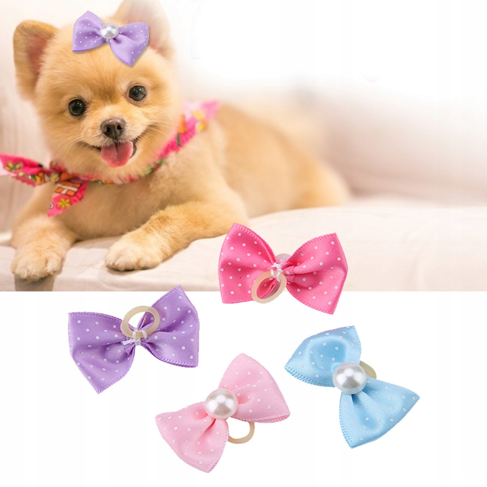 20 шт., веревка для волос в горошек с искусственным жемчугом и бантом для маленьких собак, кошек, собак
