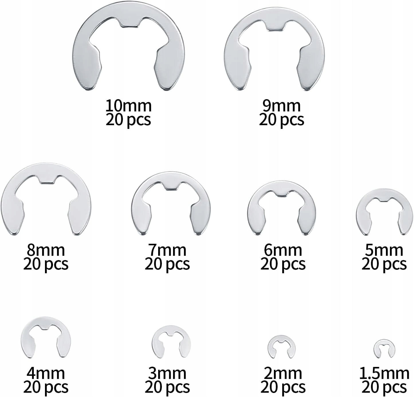 СВЯЗУЮЩИЕ КОЛЬЦА E-CLIP MIX M2-M10 НАБОР ЗАЖИМНЫХ ШАЙБ 200 шт.