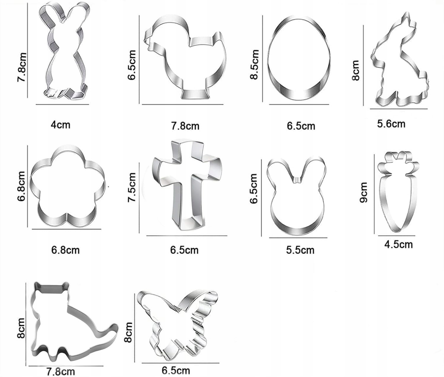 ✅ 10 Различные формы - набор форм содержит до 10 различных мотивов, включая очаровательные кролики, пасхальные яйца, цыплята и цветы. Благодаря этому каждая партия тортов может быть различной и адаптирована к теме вашей вечеринки или украшения стола. Уникальный дизайн бросается в глаза, и каждая плесень позволяет создавать шедевр кондитерской. Представьте, как ваше печенье берет на себя характер и вызывает восхищение гостями во время праздничного завтрака.