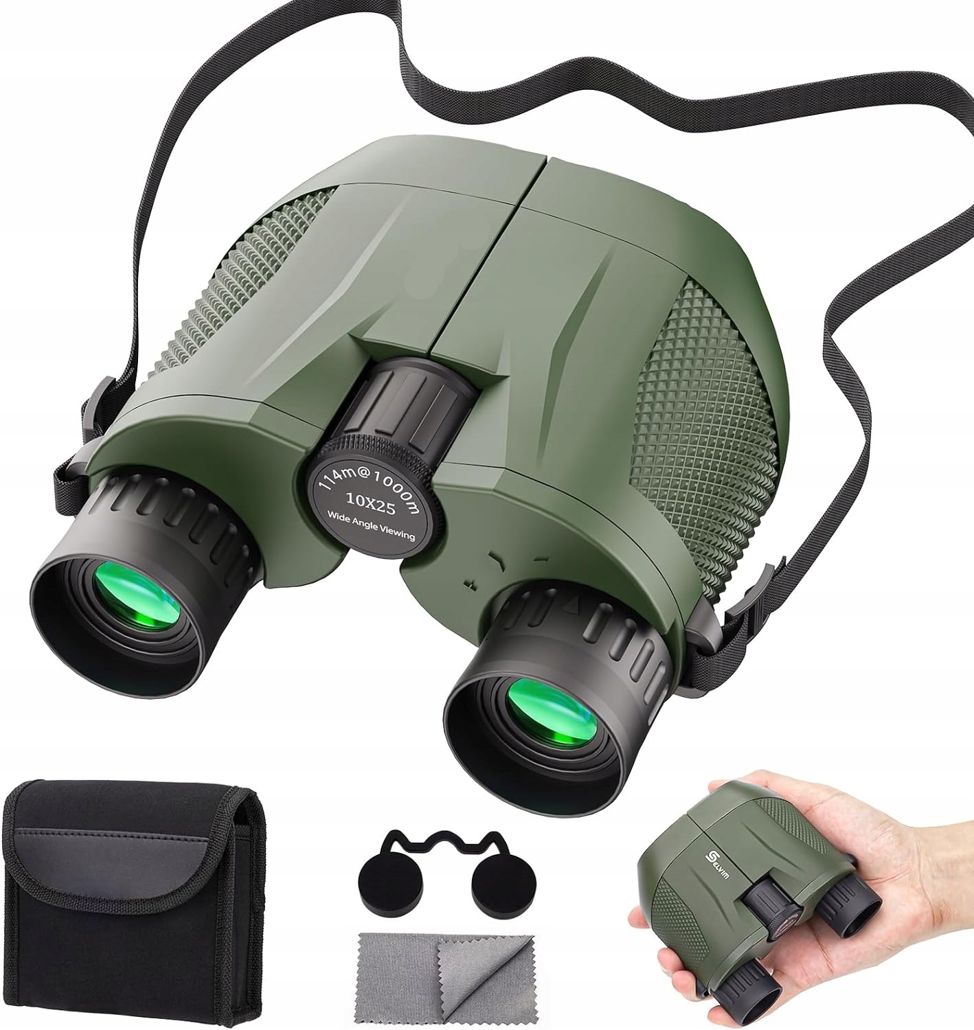 - 10 × 25 биноклей HD: 10 раз увеличение обладает превосходной способностью собирать свет. По сравнению с объективом 22 мм, эта многослойная линза 25 мм имеет эффективный диаметр для более широкого поля просмотра.