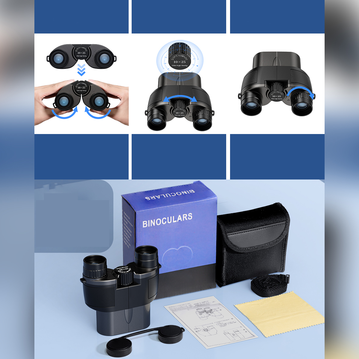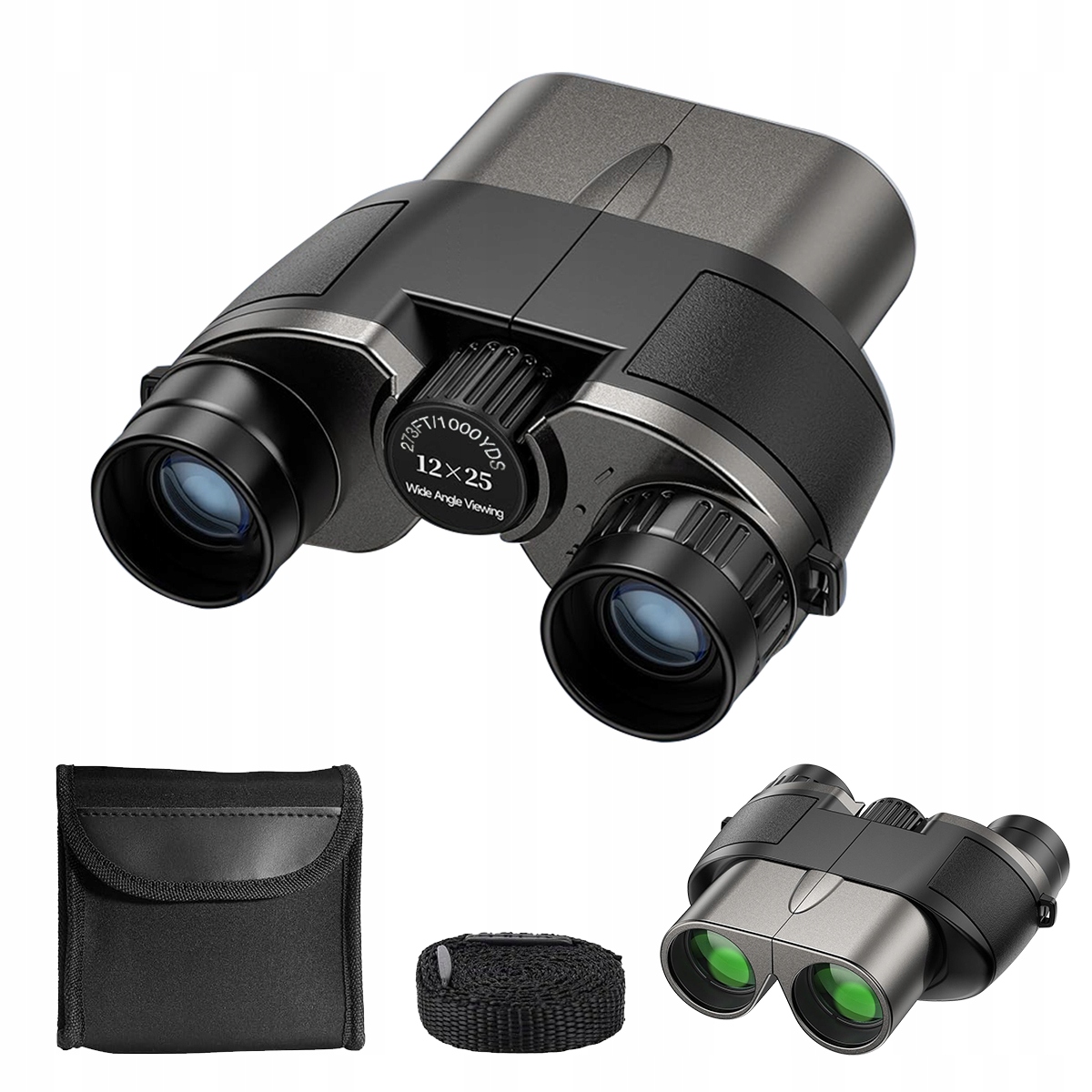 Компактный бинокль 12x25 для детей и взрослых — небольшой бинокль ночного видения, слабый свет, четкий, складной — идеально подходит для занятий спортом на открытом воздухе, наблюдения за птицами, путешествий, охоты, концертов (черный и серый)