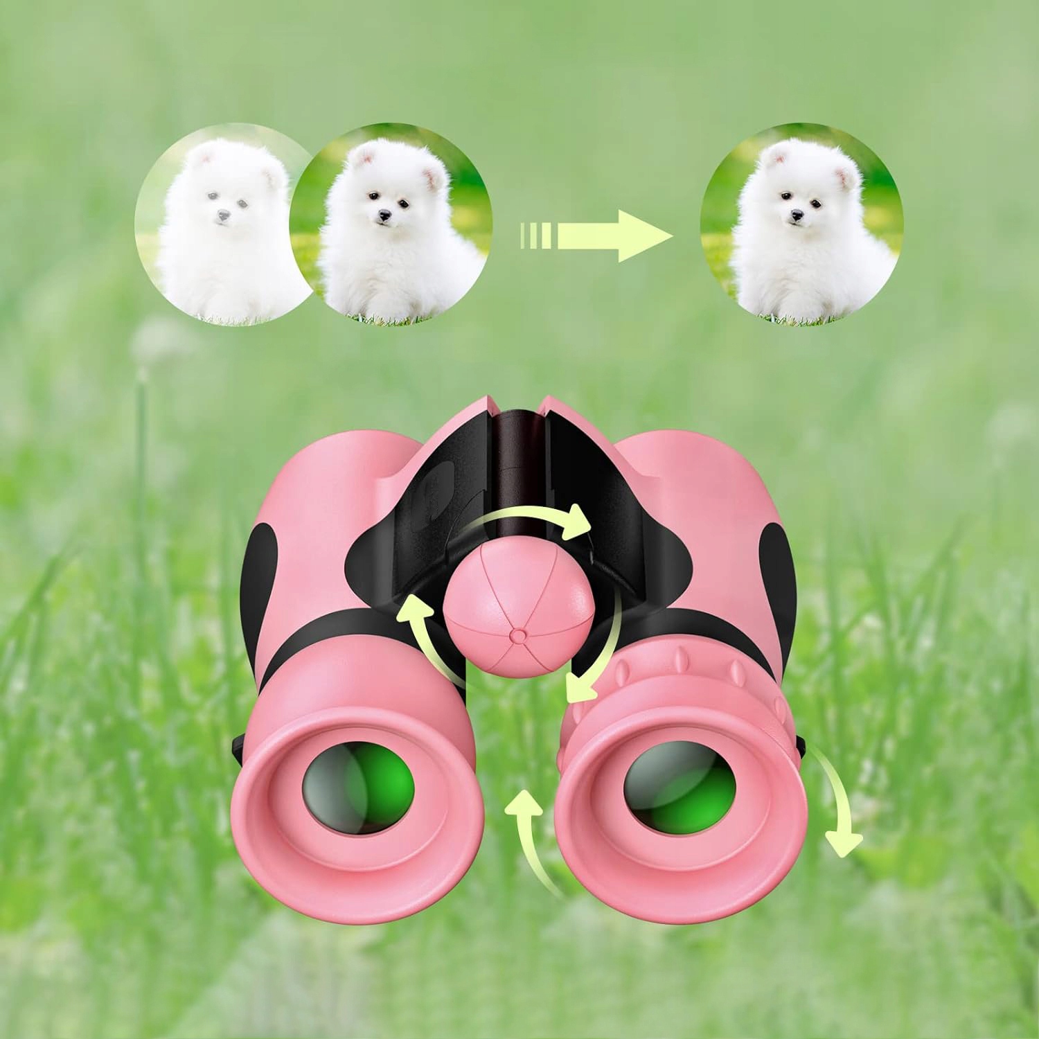 прочный, ударопрочный бинокль с мягким резиновым покрытием для защиты глаз и лица. Эргономичный дизайн обеспечивает полный захват и удобно лежит в детских руках. Ремешок для бинокля может предотвратить падение. Регулируемая и складная конструкция позволяет регулировать расстояние между глазами в соответствии с потребностями каждого ребенка.