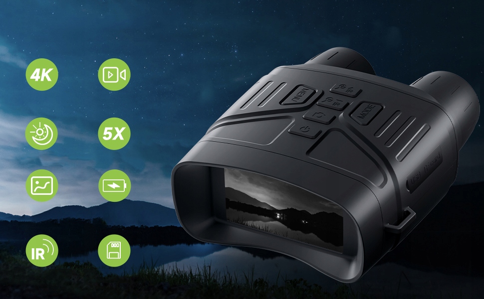 🔭Очки ночного видения с 3-дюймовым TFT-ЖК-экраном, позволяющим просматривать кристально четкие фотографии и видео. Апертура объектива 25 мм и 5-кратный цифровой зум обеспечивают более полное поле зрения. Идеально подходит для активного отдыха, безопасности и наблюдения, кемпинга, наблюдения за дикой природой и пейзажами.