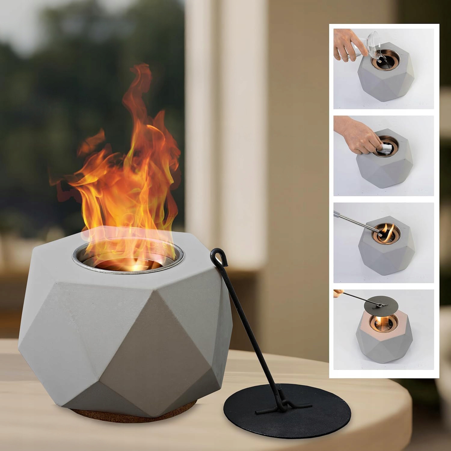 } Сторонная печь, настольная печь для этанола, круглая, бетонная столовая печь, портативный столовый камин для использования снаружи и внутри ² Конец
