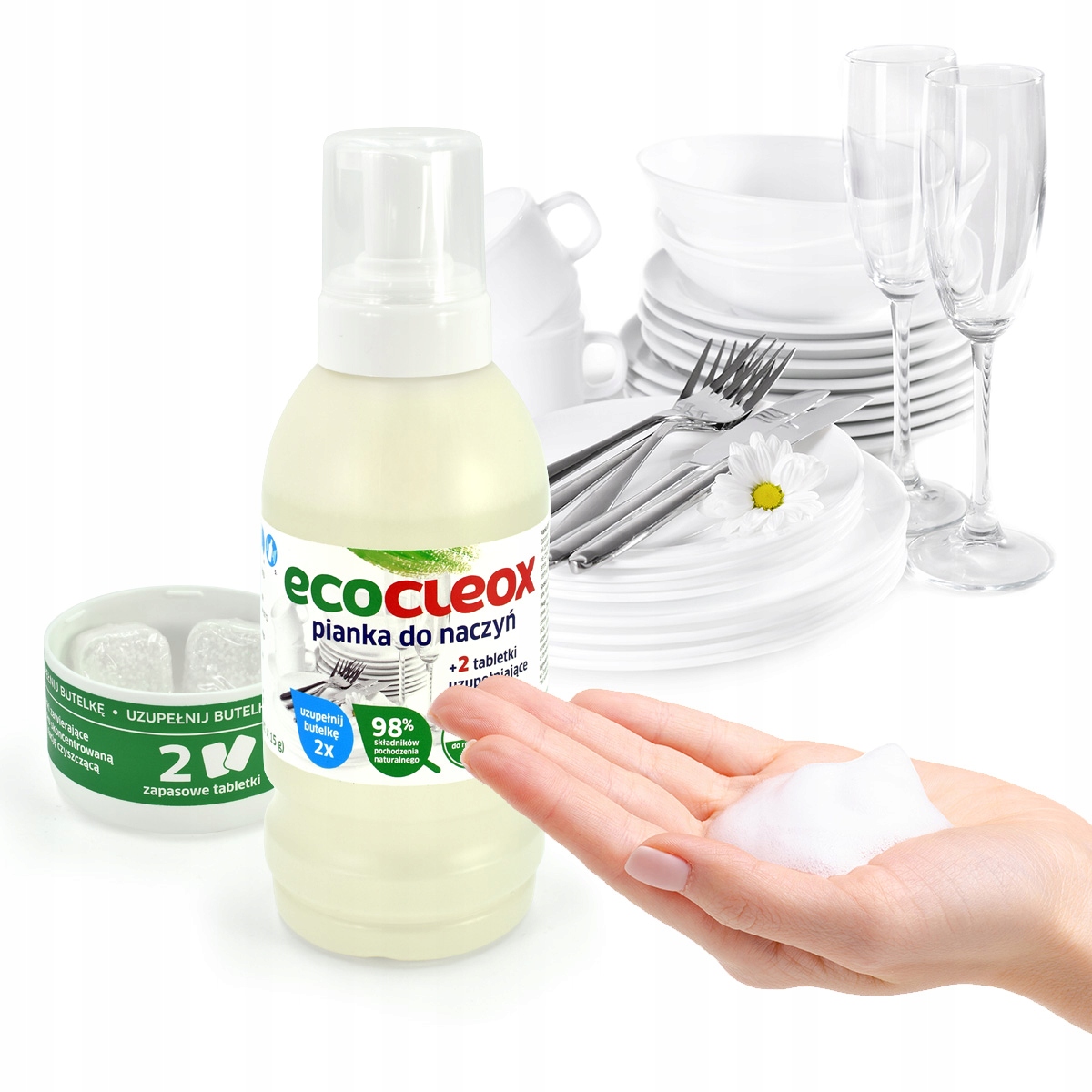 Флакон пены EcoCleox также содержит запасные таблетки для замены.