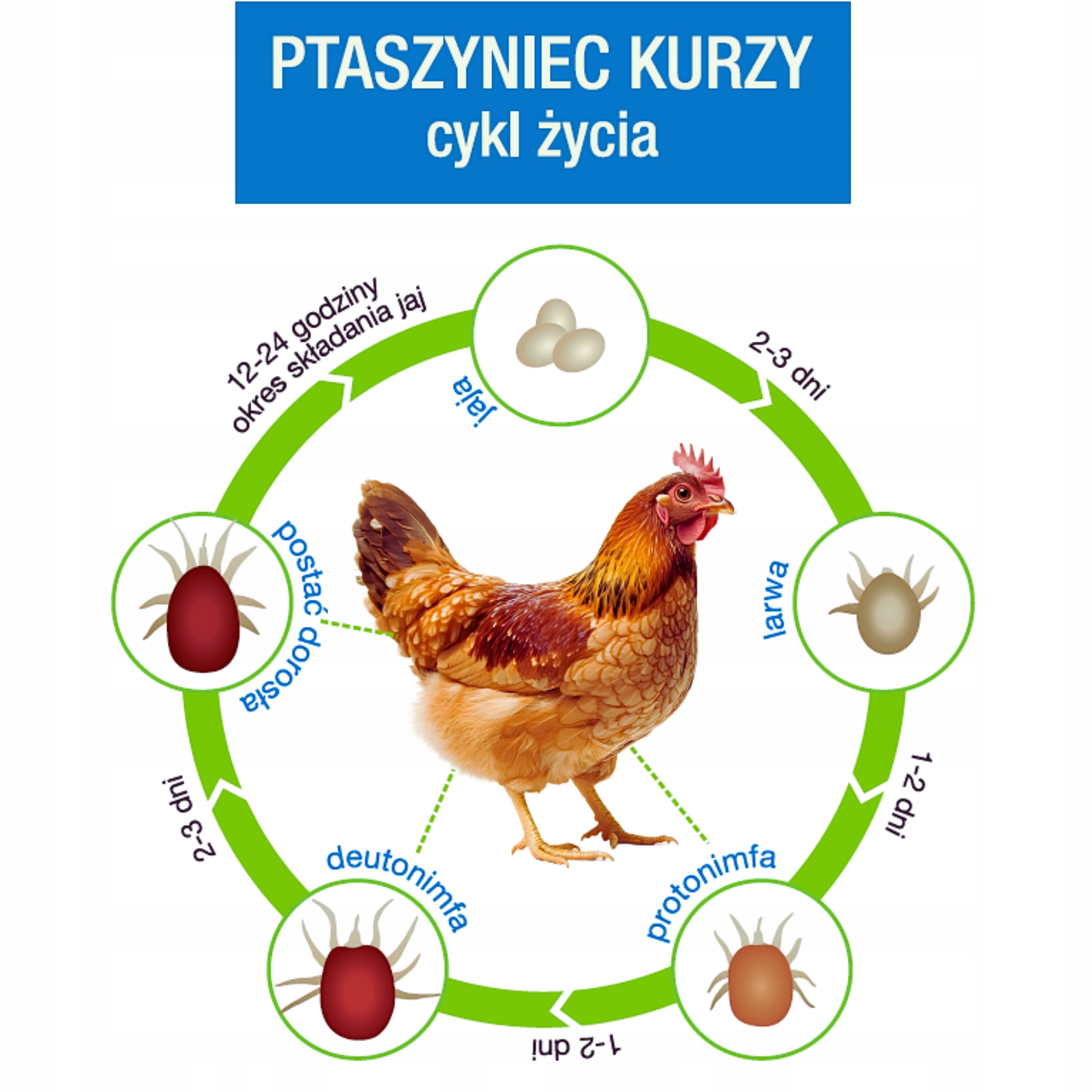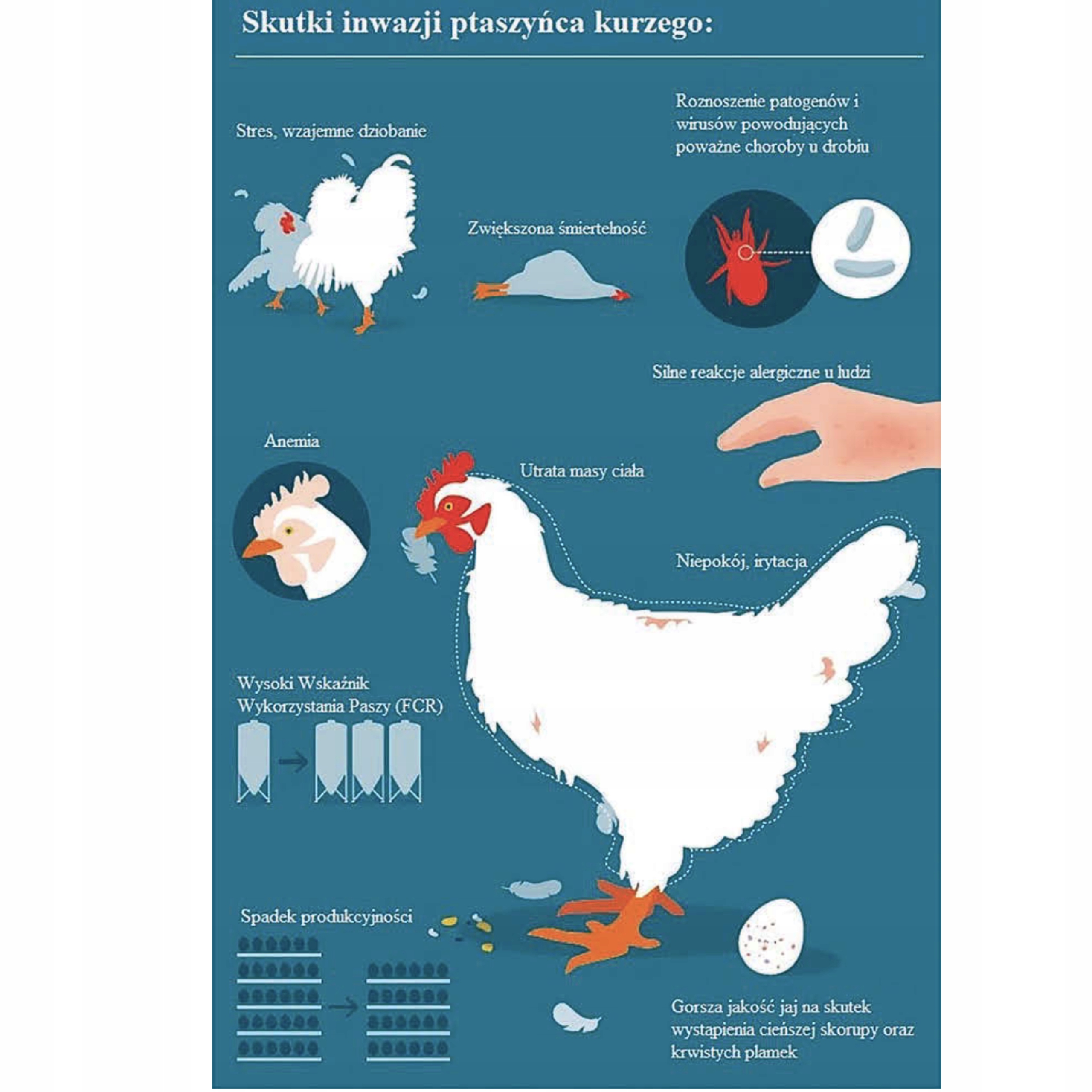 Поскольку клещи могут выжить в пустом курятнике до 10 месяцев (без еды), важно тщательно дезинфицировать помещение, прежде чем возобновить размножение.