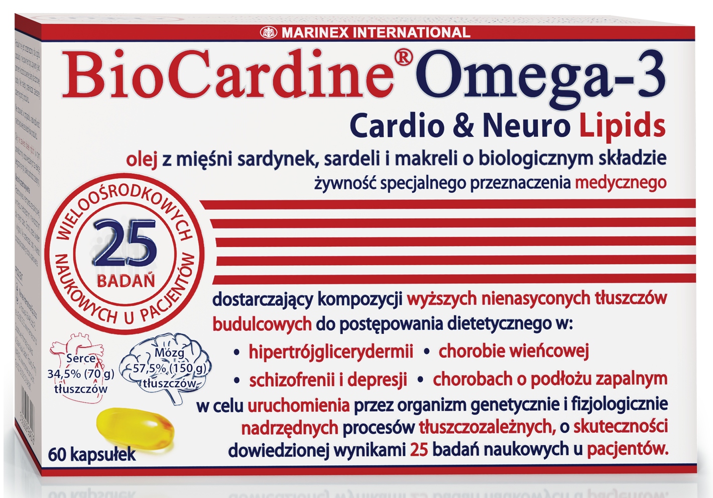 BioCardine®Omega-3 Cardio & Neuro Lipids мышечное масло сардины, анчоуса и скумбрии с биологическим составом (ŻSPM) предназначено для диетического лечения взрослых и детей с массой тела более 10 лет. кг.