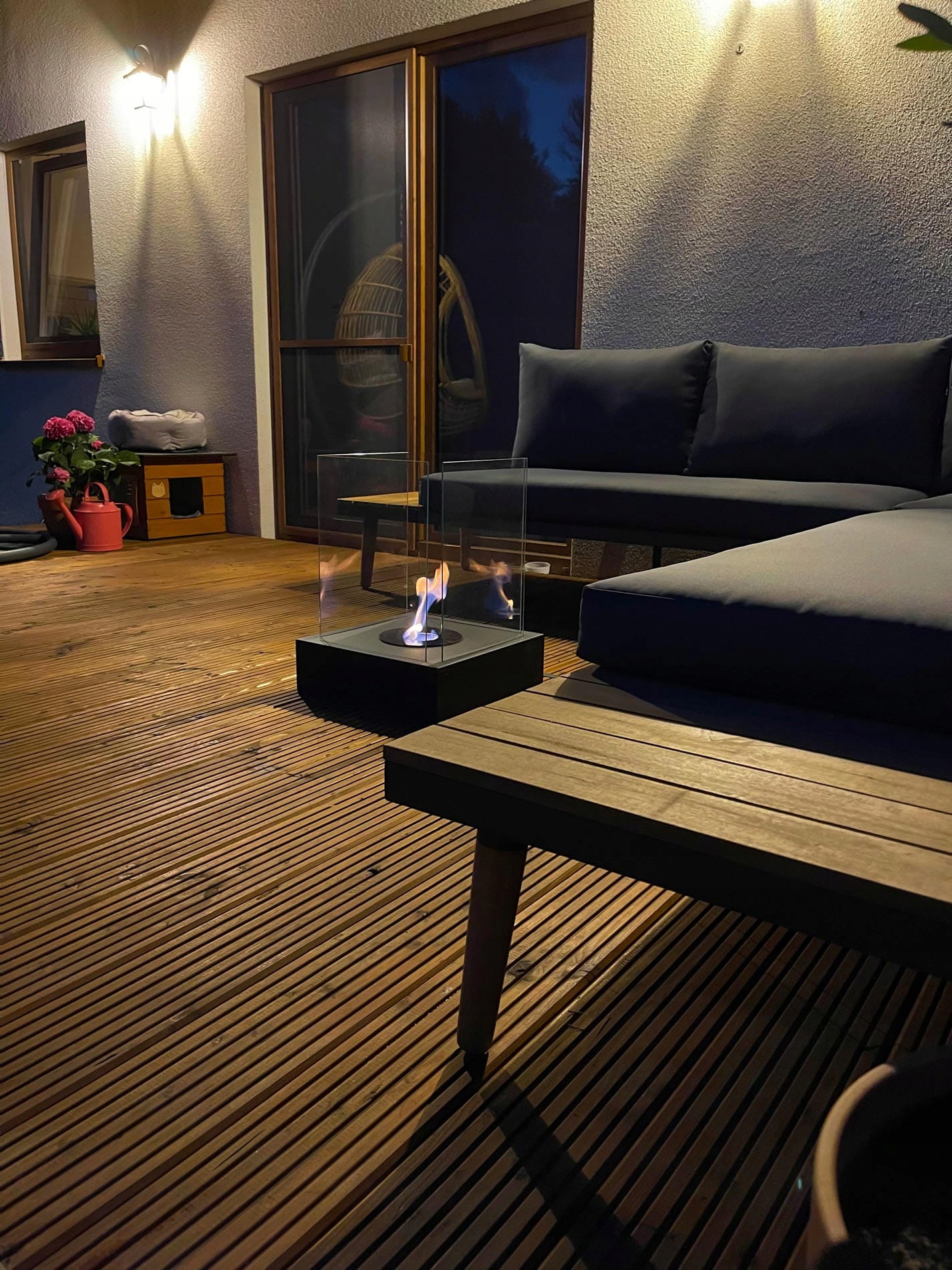 Мы представляем Bio -камин Sunset Garden с необычайной подвижностью в элегантном, глубоком оттенке черного - ваш ключ к созданию магической атмосферы и обеспечения уютной тепла в любом интерьере.