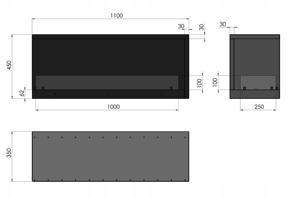 Размеры: ширина 1100мм/высота 450мм/глубина 350мм;