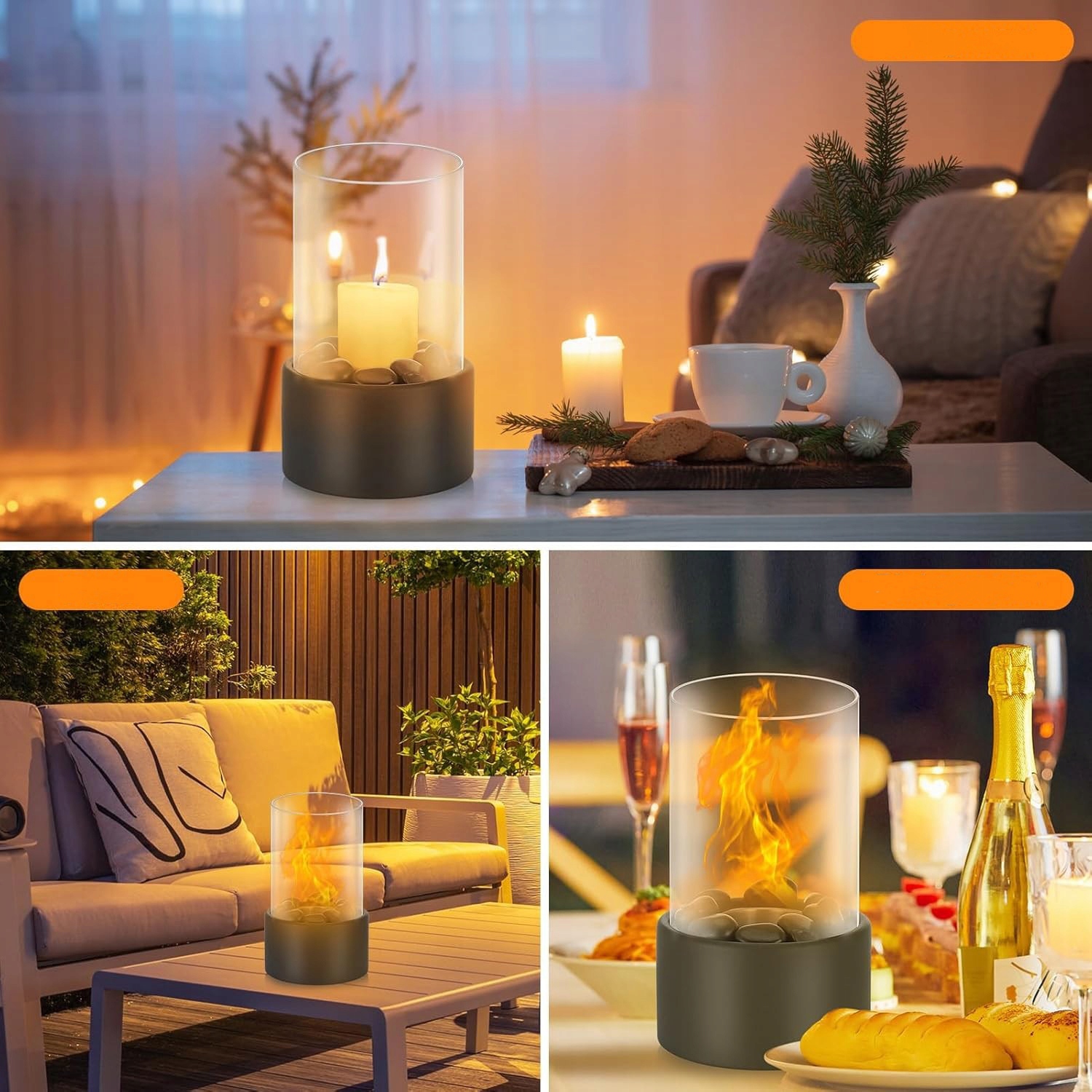 🔥 Подходит для использования внутри и снаружи: Наш этаноловый камин предназначен как для внутреннего, так и для наружного использования. На балконе, террасе, в гостиной или в саду этот настольный камин создает уютную атмосферу и обеспечивает приятное тепло.