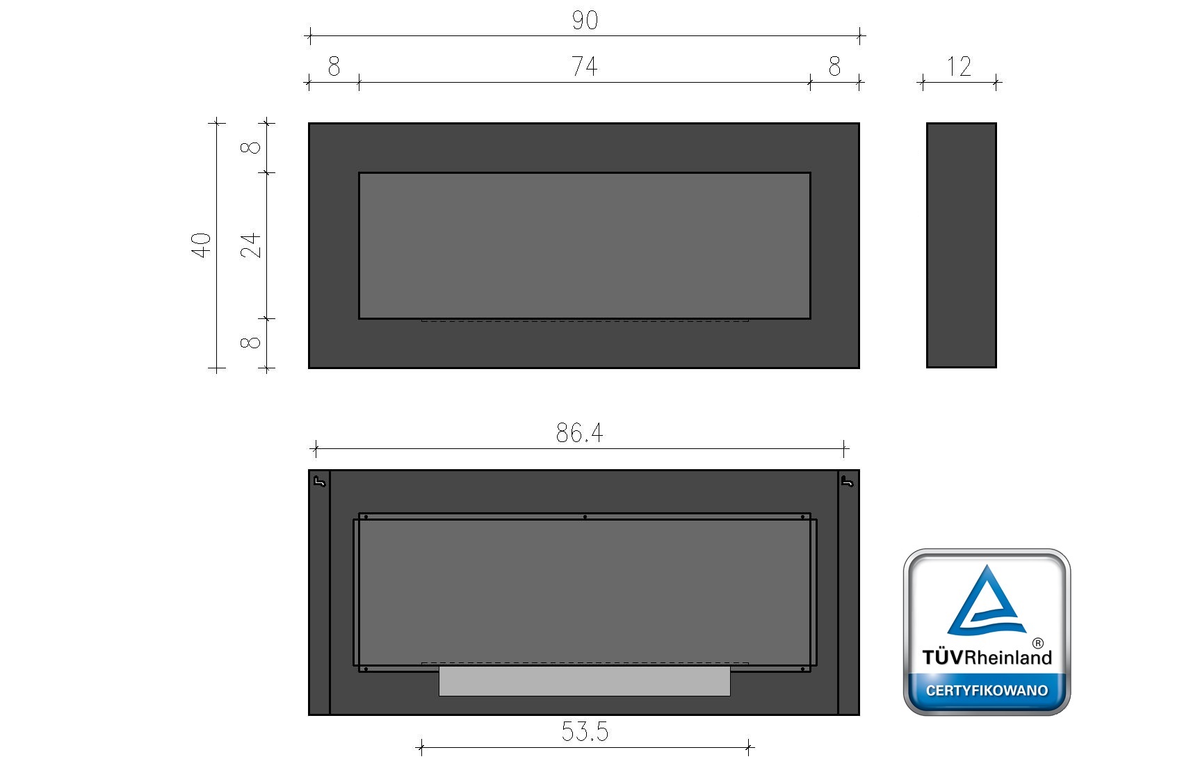 BIOKOMINEK 90x40 BOX IN FLAT 900x400 чёрное стекло