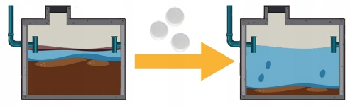 - септик - 1 таблетка на 3 м3 резервуара.