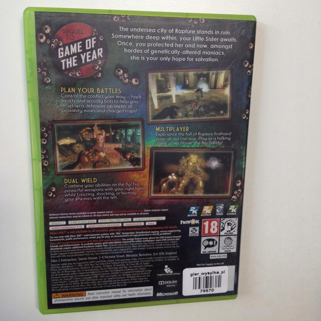 Просматривая «Bioshock 2 x360», вы можете быть уверены, что данный товар из каталога «Microsoft Xbox 360» будет доставлен из Польши и проверен на целостность. В цене товара, указанной на сайте, учтена доставка из Польши. Внимание!!! Товары для Евросоюза, согласно законодательству стран Евросоюза, могут отличаться упаковкой или наполнением.