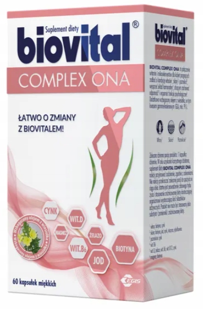 Биологически активная добавка Биовитал Комплекс Она представляет собой комплекс витаминов и минералов, дополнительно обогащенный маслом примулы вечерней. Формула была разработана с учетом пищевых потребностей женщин.