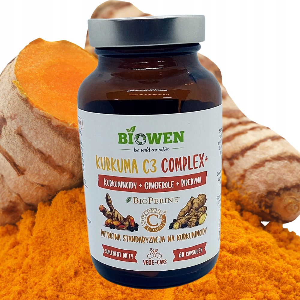 - demetoxicumina. Он обогащен экстрактом с имбирем, стандартизированным на Gingerole и Fruit of Black Bioperine® Pepper, как стандартизировано на пиперине. Комплекс куркумы C3+ BioWen представляет собой не только богатство растений со многими ценными свойствами, но и куркуминоидный комплекс, полученный из корня куркумы. Благодаря этому продукту вы можете обнаружить потенциал природных веществ, которые поддерживают пищеварительную систему, обеспечивают анти -инфляционный и антиоксидант и оказывают положительное влияние на печень, кости, дыхательную систему и многие другие функции организма. Познакомьтесь с комплексом куркумы C3+ BioWen и испытайте все преимущества, которые он может принести вам