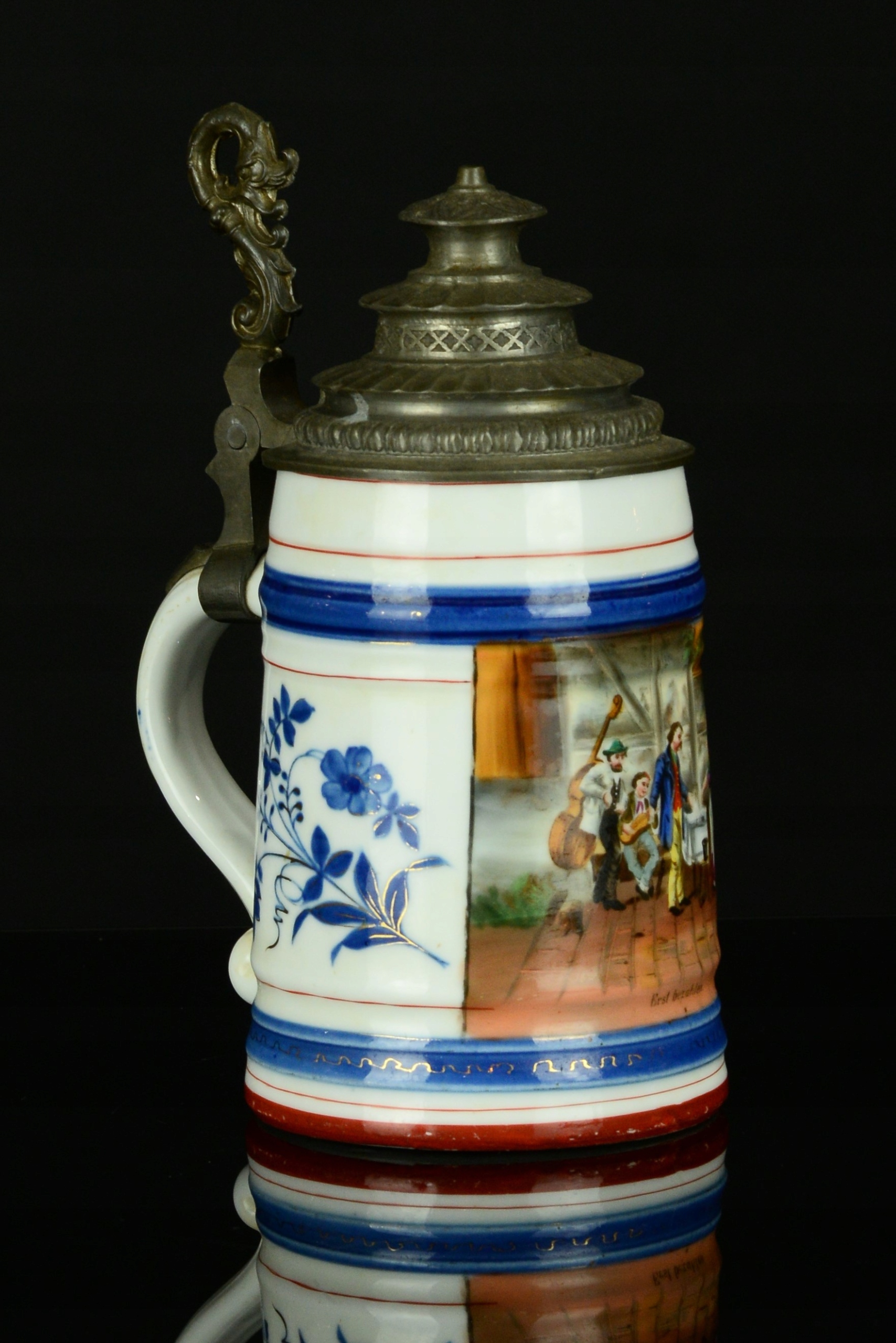 ТЭГГЕР С ЛИТОФАНКОМ И ДЕКОРАТИВНОЙ ЖЕСТЯНОЙ КЛАПАНКОЙ, около 1890 г.