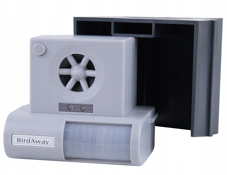 Bird Away излучает ультразвуковые волны переменной частоты, которые эффективно отпугивают птиц, таких как: воробьи, скворцы, вороны, вороны, ласточки, сороки, галки, голуби и т. д. < /п>