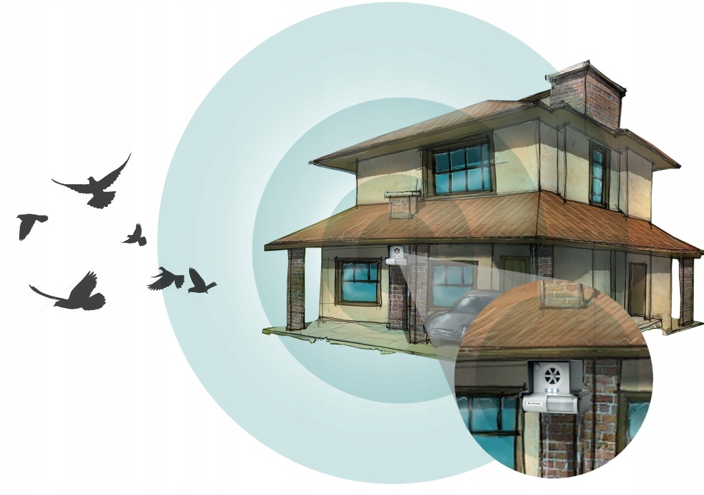 Репеллент подходит для защиты территории от нежелательного присутствия птиц и грызунов. Лабораторные исследования подтверждают, что действие ультразвуковых волнпоражает слуховую и нервную системы птиц. Первые эффекты отпугивателя видны сразу после запуска устройства. Ультразвук создает неблагоприятные условия для птиц.