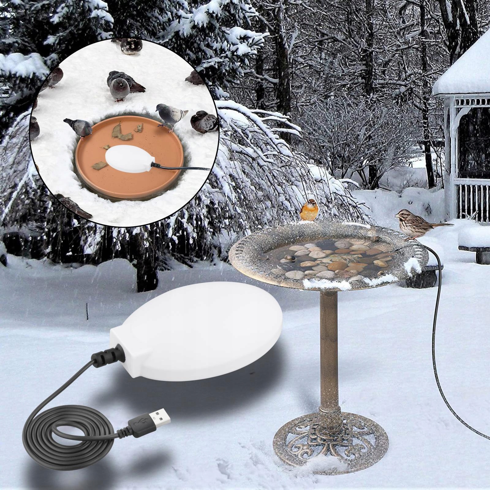 Нагреватель для размораживания птичьей ванночки 15 Вт с термостатом. Это предотвратит замерзание купальни для птиц зимой. Постоянная температура составляет 35 градусов Цельсия. Работает только при необходимости и не нагревает воду!