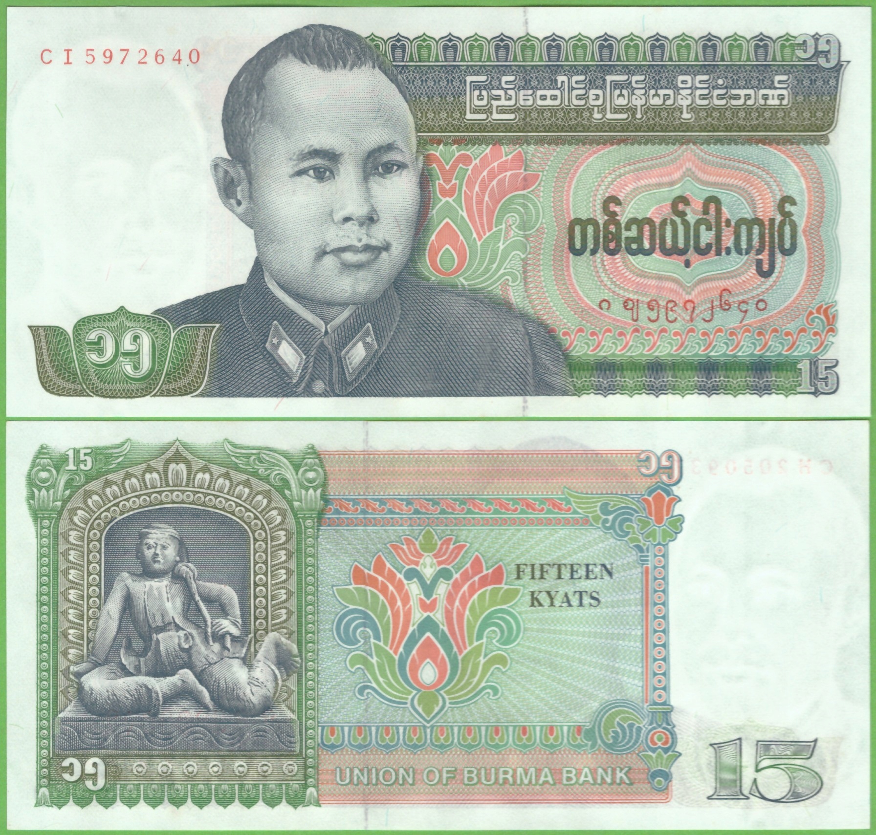 BIRMA 15 KYATS 1986 Р-62 UNC ПРЕФІКС ТОБІ