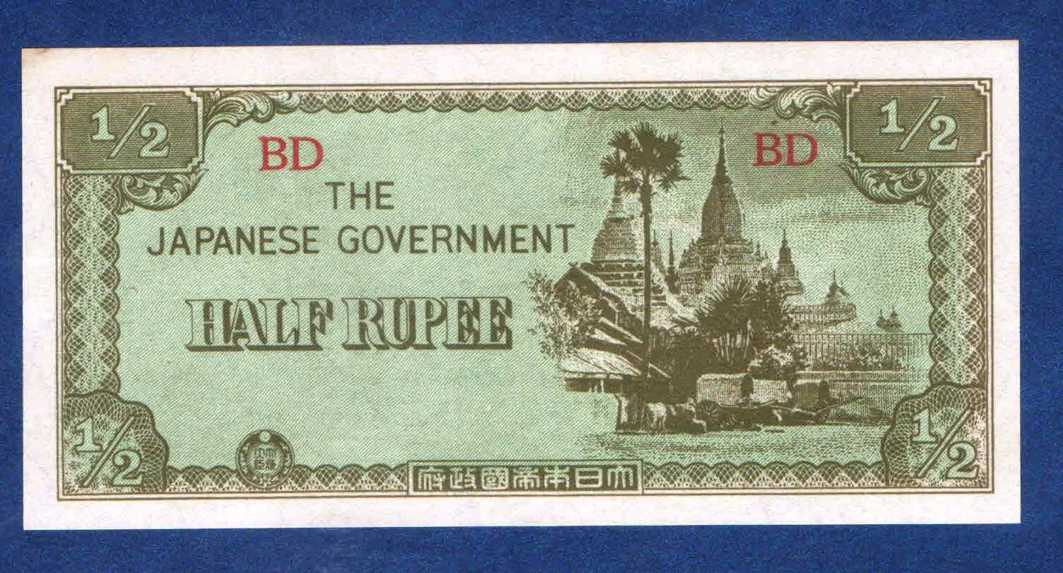 БИРМА 1/2 РУПИИ ЯПОНСКОЙ ОККУПАЦИИ 1942 ГОДА