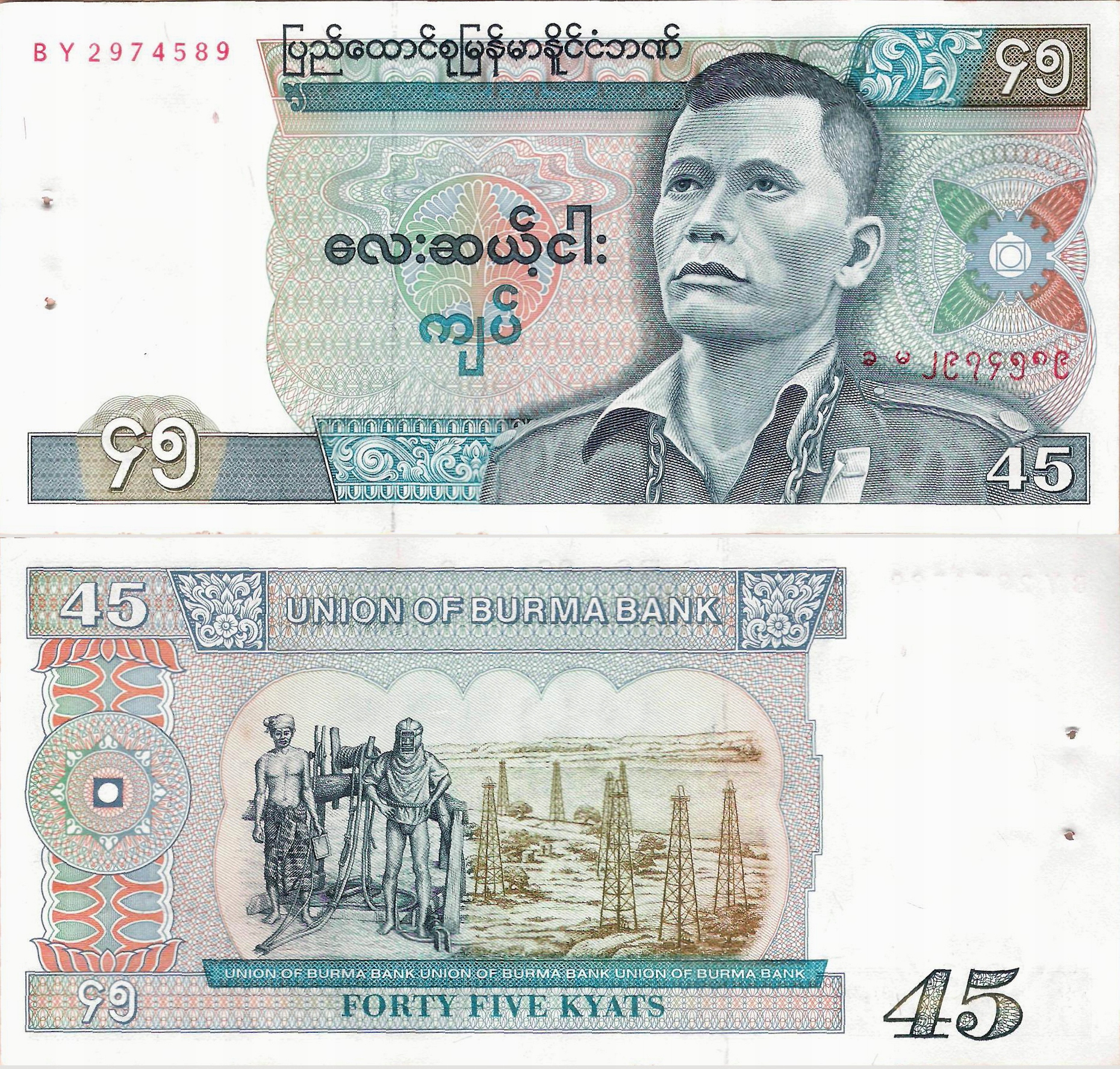 Birma 1987 ND - 45 kyat - Pick 64 aUNC (PINHOLES)