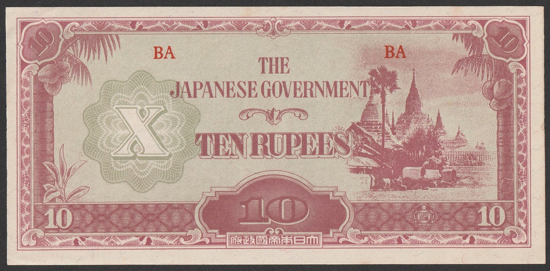 Бирма Бирма 10 рупий 1942 года - BA - банковское государство UNC -