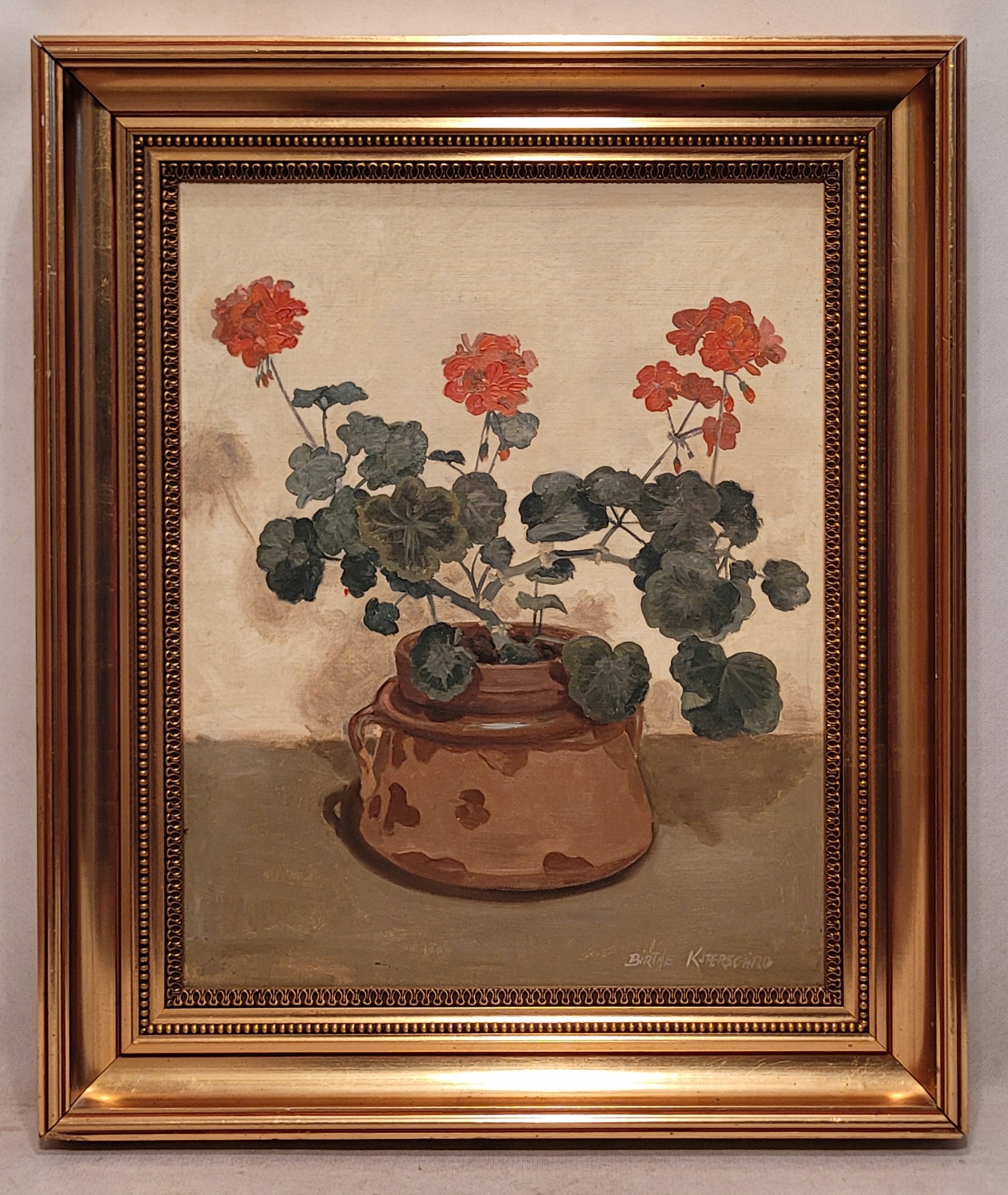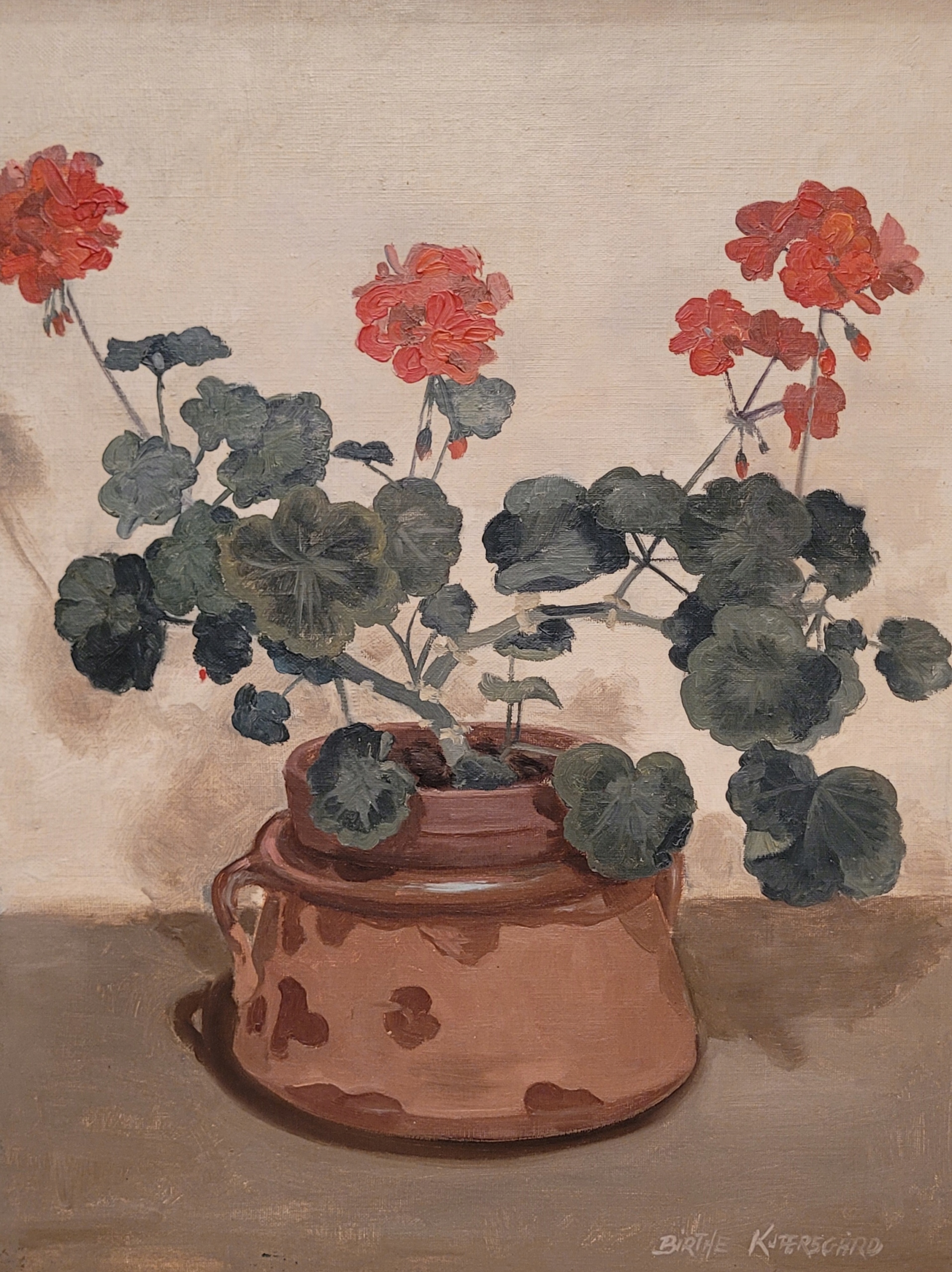 Рождение Kjaersgaard (xx) - «Геран в горшке», красивая нефтяная картина.
