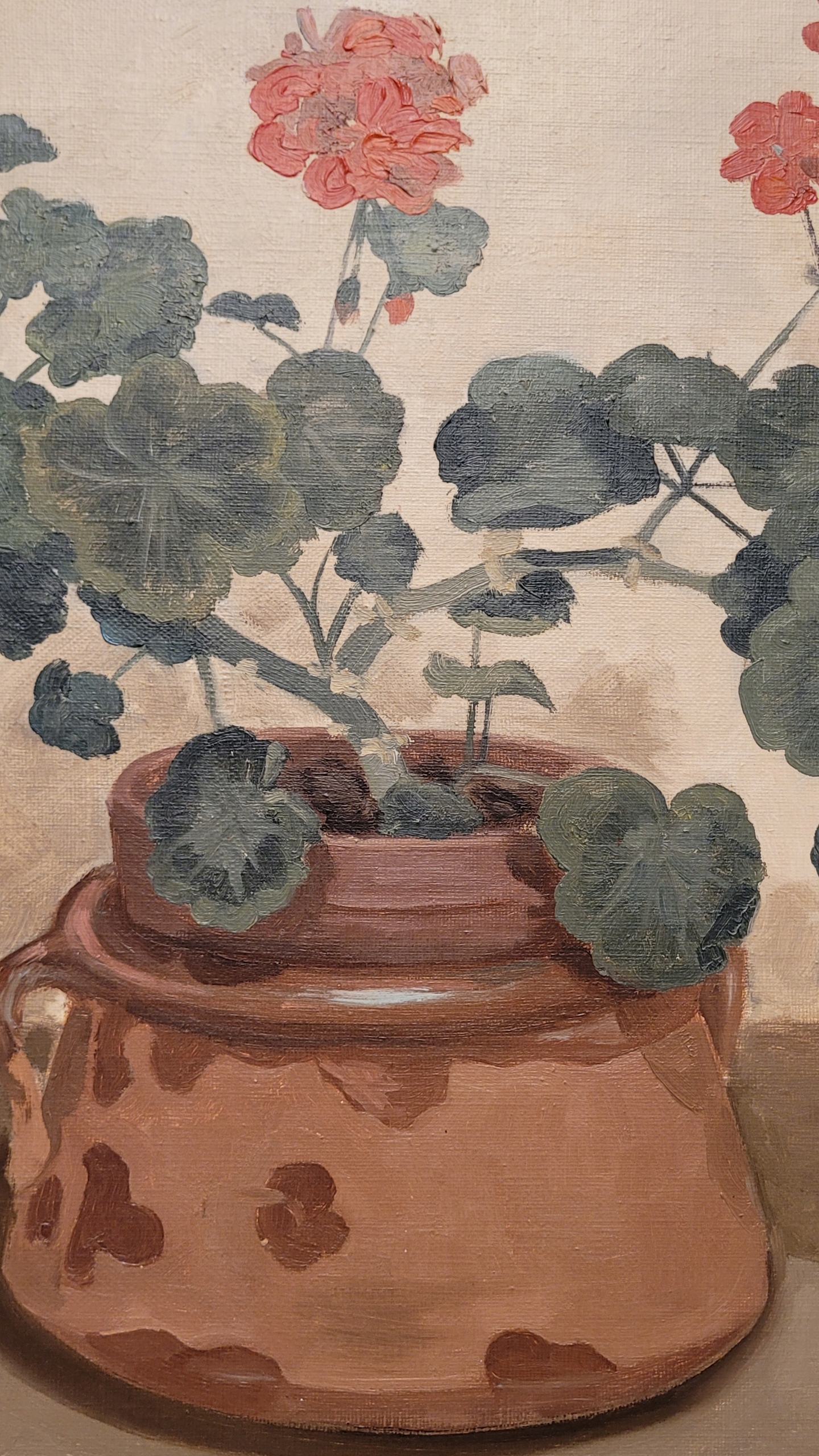 Тема продажи - красивая старая нефтяная картина "Герани в горшке".