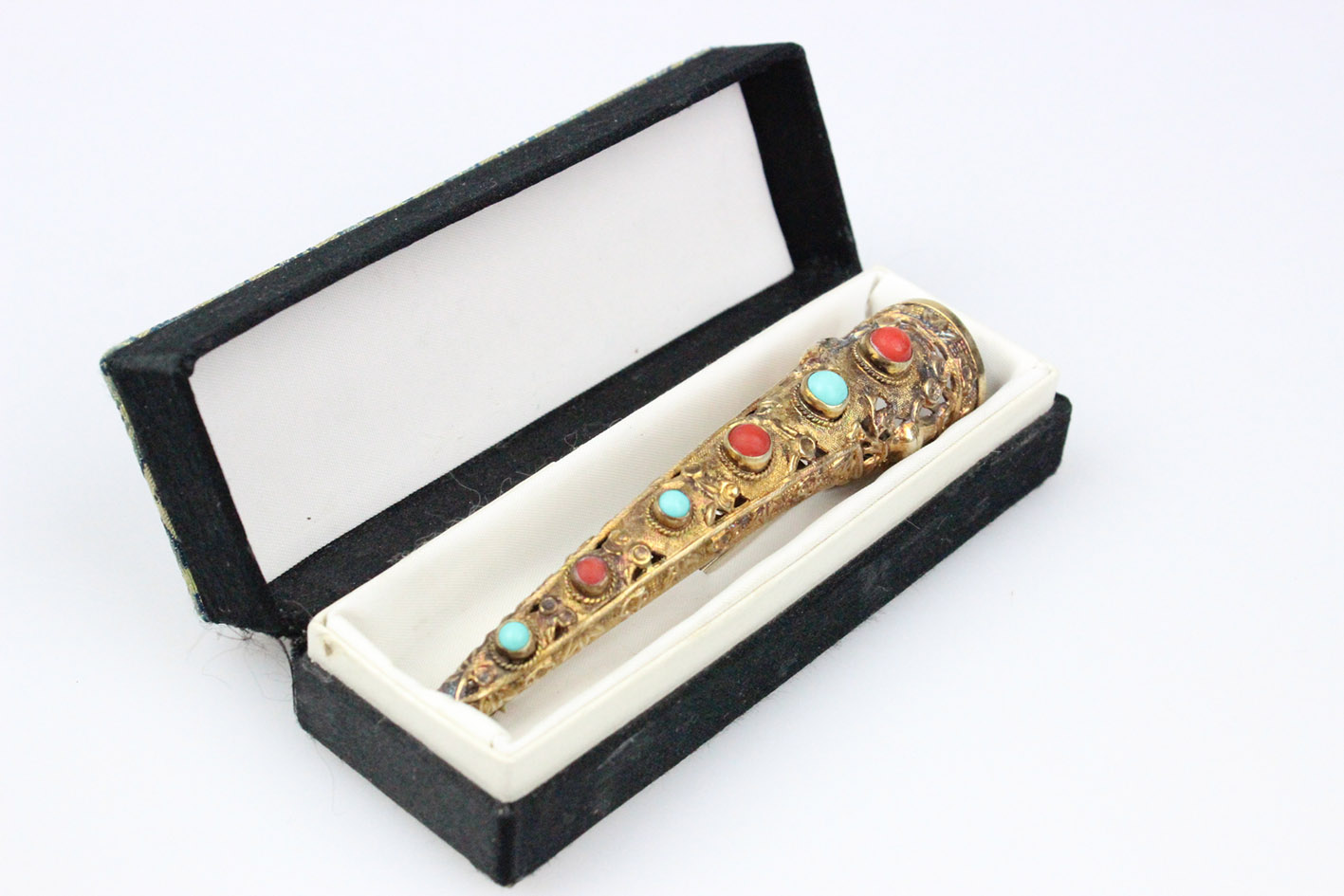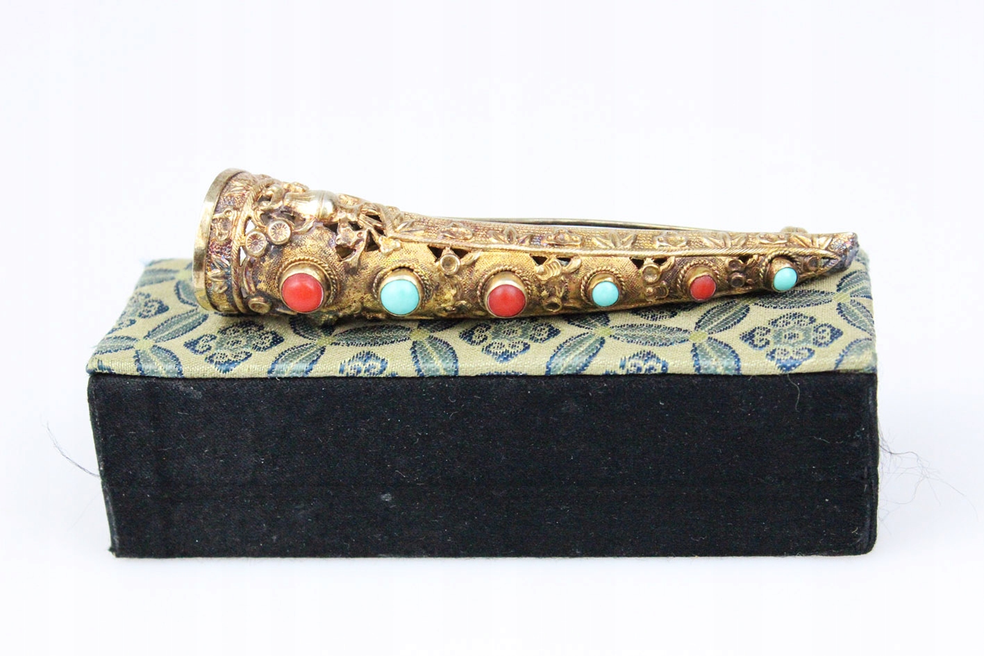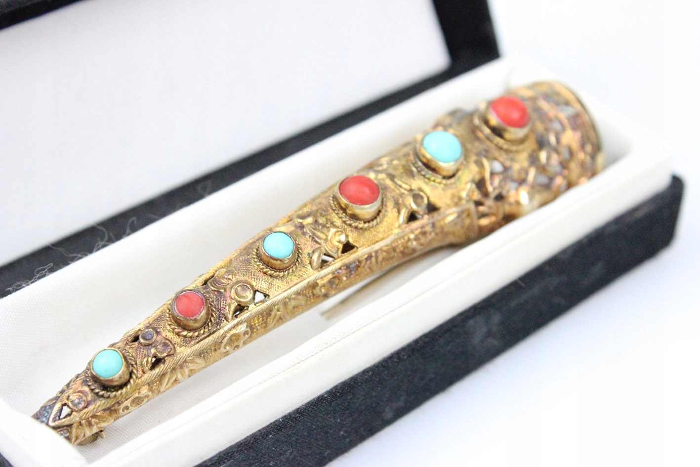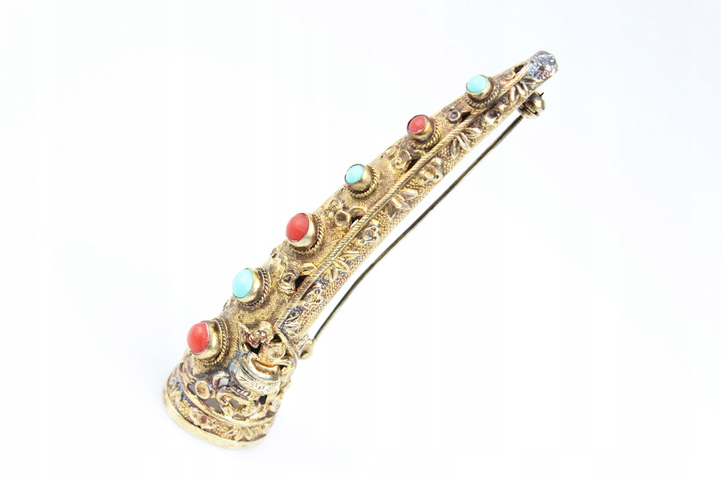 БІРЮЗОВА КОРАЛОВА СРІБНА КИТАЙСЬКА БРОШКА ПОЗОЛОЧЕНА