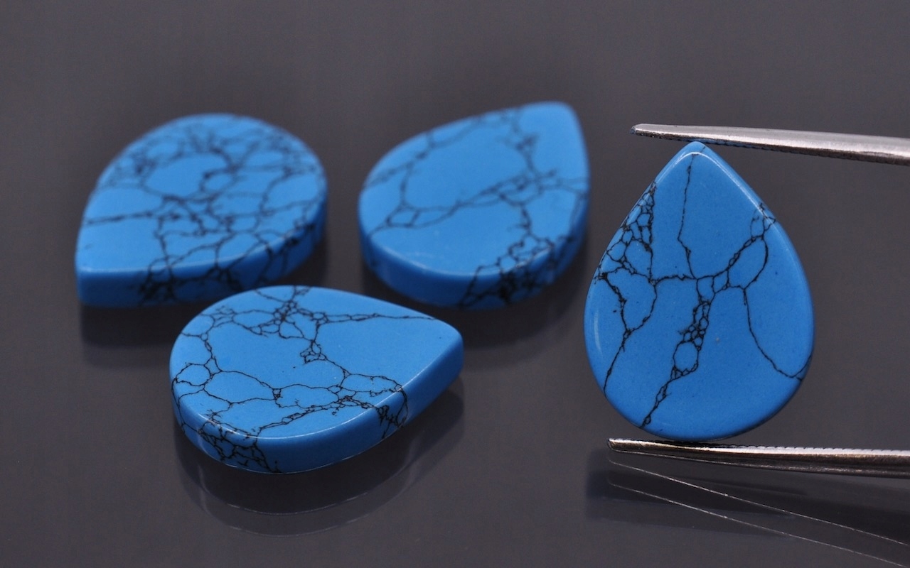 Реконструированный бирюзовый - Реконструированный камень, этот метод включает в себя плавильный порошок или мелкие камни выбранного минерала (в данном случае бирюзовой) при высокой температуре, а затем медленно охлаждает их. Таким образом, получены большие блоки камней, из которых вы можете полировать любую форму