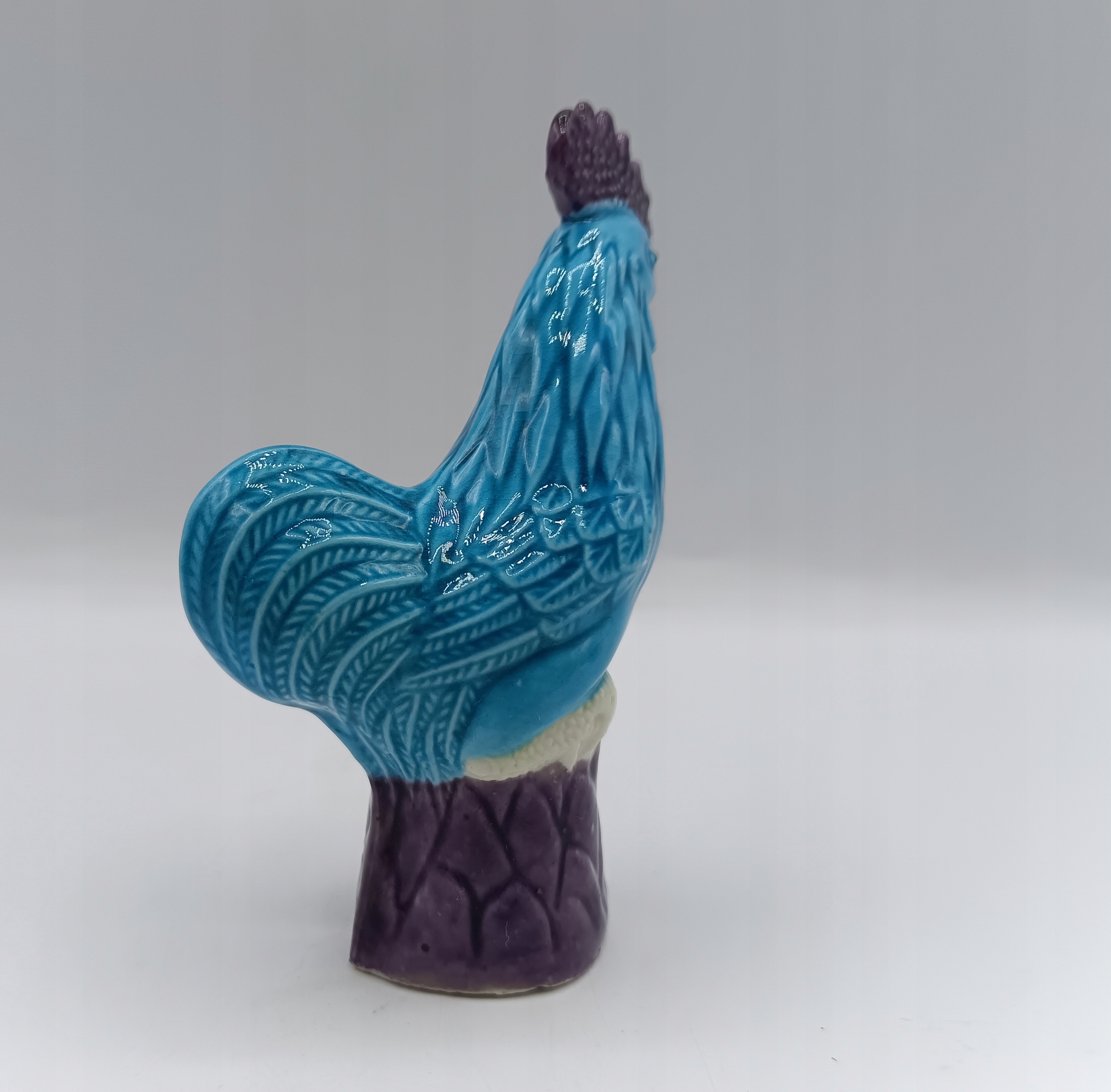 - китайская статуэтка с началом 20 -го века в цвете синей бирюзы и баклажана, фарфоровое глазирование под номером!
