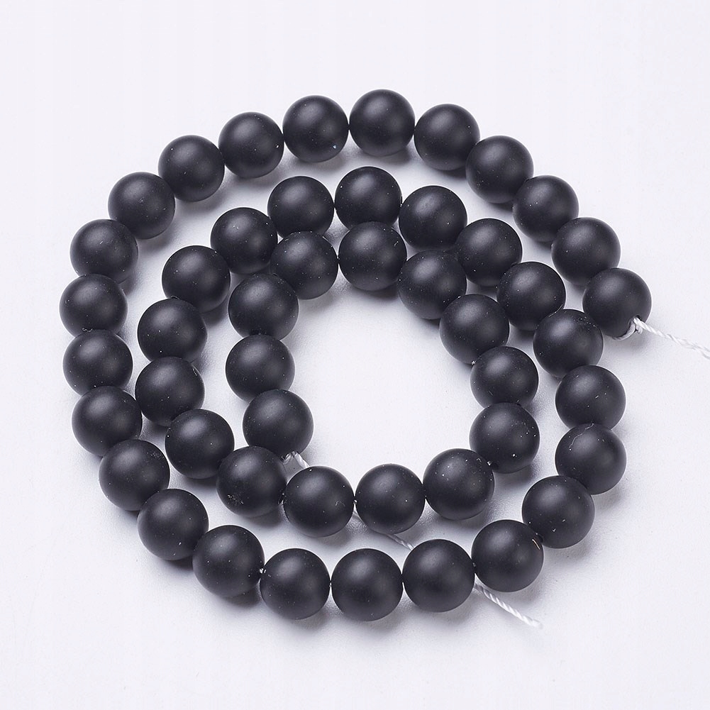 Бісер з натурального чорного агату сорт А морозний круглий 8мм 46шт/37,5см