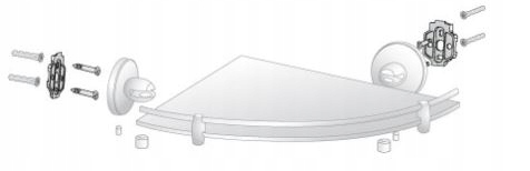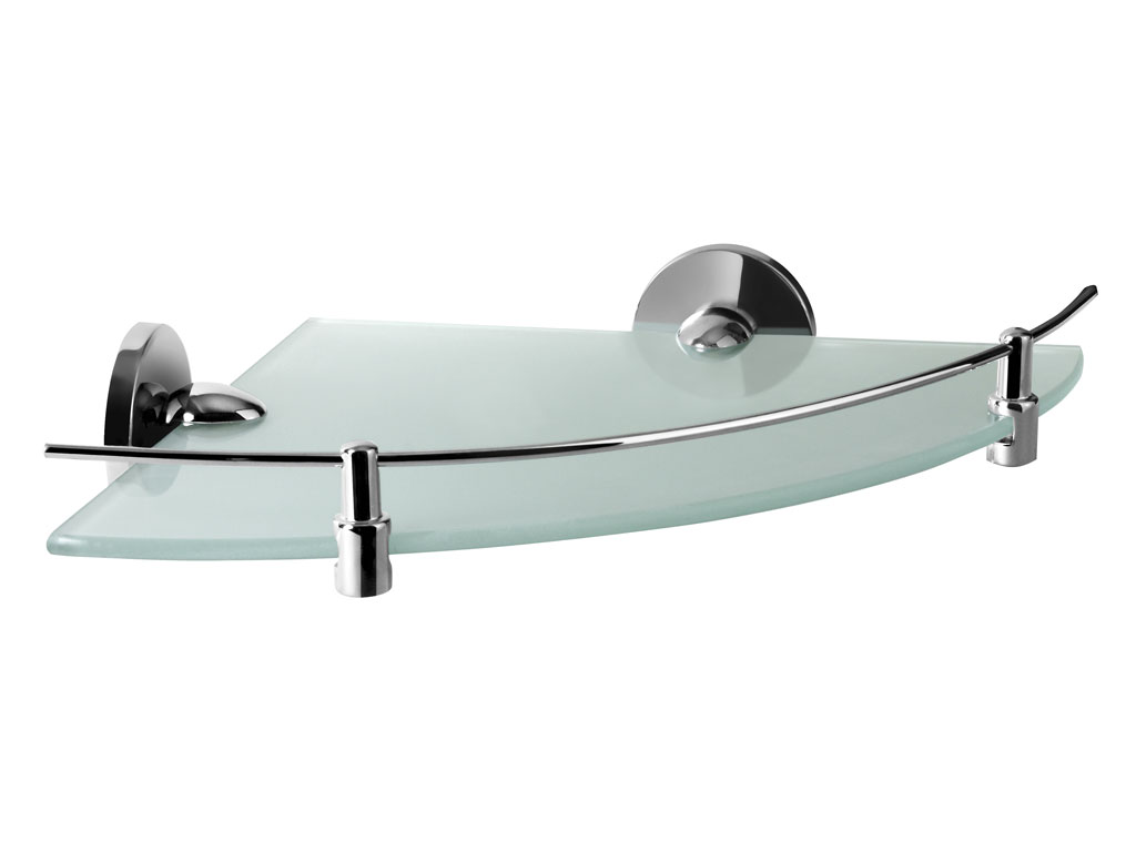 Угловая полка из коллекции CHROMA. Крепится к стене шурупами или клеем БИСК ФЕСТ. Изготовлена из хромированного замака и матового стекла.