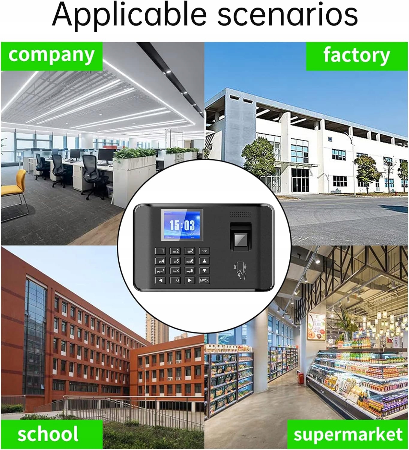 ✔Это устройство может ввести до 1000 отпечатков пальцев. Он также поддерживает наличие удостоверения личности и пароля. Подходит для офисов, фабрик, отелей, школ, ресторанов, розничных магазинов и больниц.